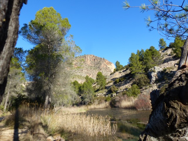 Pique nique, quelques kilomètres plus loin, au point de départ de la rando « la garganta verde ». Une garde forestière garde le parking (comme son nom l’indique) et nous dit qu’il faut un permis pour faire la rando (permis qui peut être récupéré à El Bosque, à une 20 aine de km par des petites routes de montagnes). Ça tombe bien, on n’avait pas envie de faire cette balade (dans une gorge en hiver, que j’imagine à l’ombre, bof …) et du coup on se rabat sur une autre rando qui démarre au col, tout en haut de la montagne. Cette rando nous permet de continuer d’admirer l’embalse, mais de bien plus haut. Elle fait le tour d’un sommet, pour gravit jusqu’à son fait avant de nous ramener au parking, au niveau du col permettant à la route de basculer sur l’autre versant de la colline.