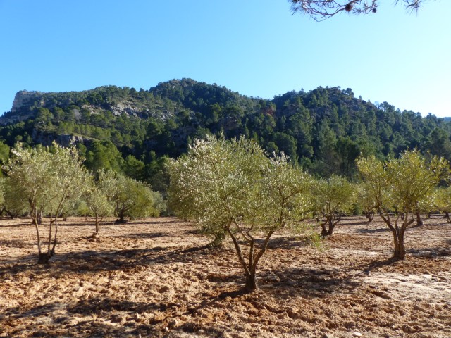 Le soleil joue avec les nuages (mais ce sont les nuages qui gagnent le plus souvent). On pousse jusqu’à Guadalcanal, d’où démarre le « Sendero del Viento » (pas tellement bien nommé aujourd’hui car il n’y a pas beaucoup de vent). On sort notre table de camping et nos chaises sur le côté de la piste, au milieu des oliviers. Les 4X4 qui passent par là pour aller s’occuper des oliviers sont un peu étonnés de nous voir là par ce temps …. Tant pis, on fait quand même notre rando qui nous emmène au bout de 3 ou 4 km de chemin de crête avec vue panoramique, à une cabane de type « borie », autour de laquelle broutent quelques brebis.