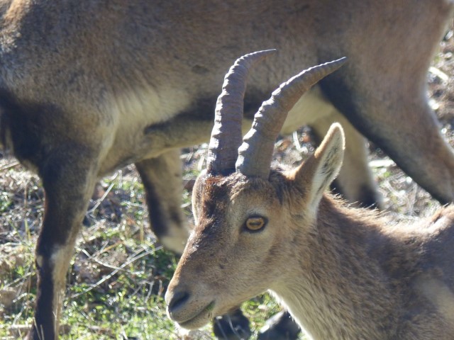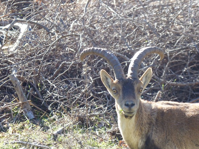 En remontant vers l'autoroute, grosse surprise ! Manifestement, nous sommes bien dans un parc naturel; nous approchons ces bouquetins sans difficulté.