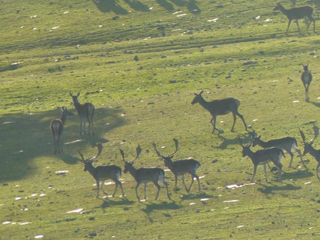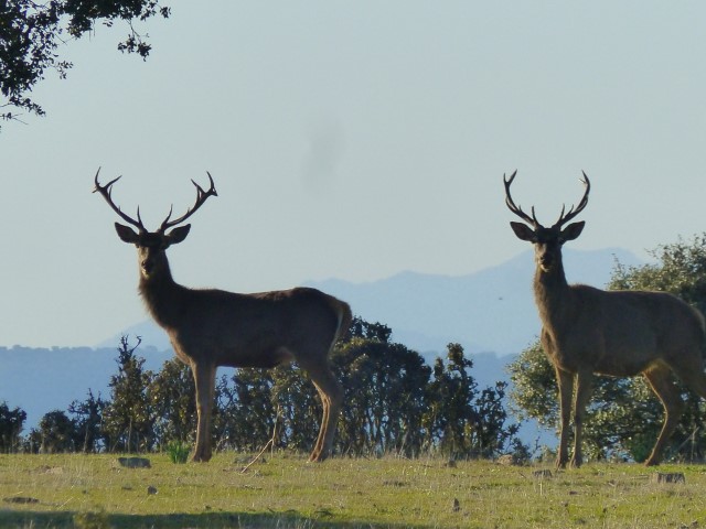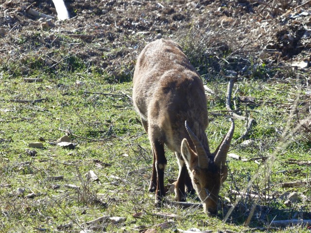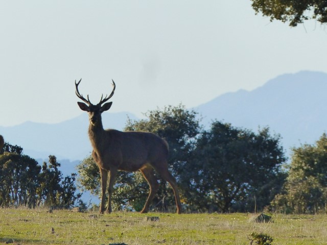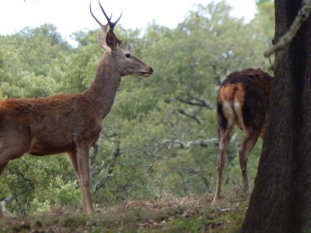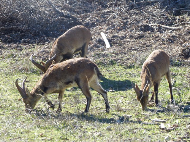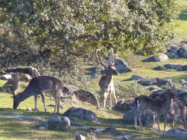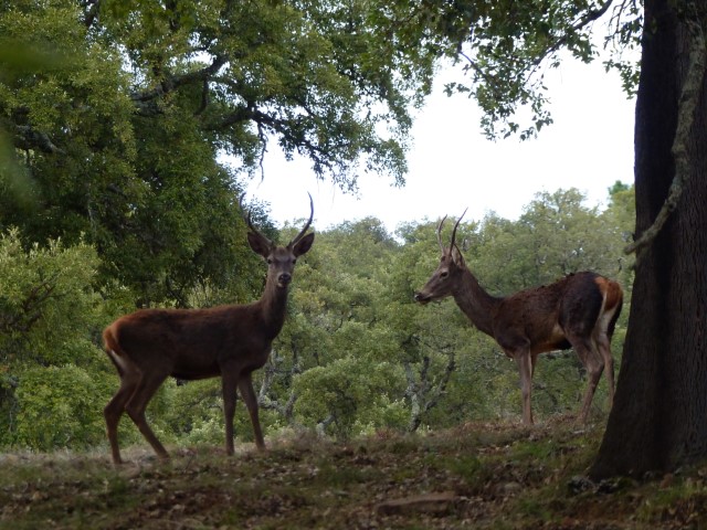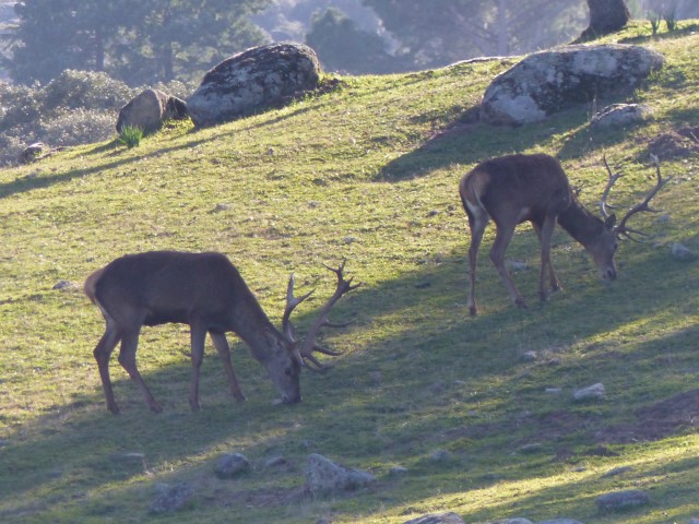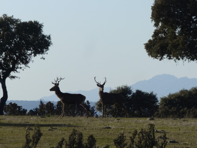 Pour nous ce sera petit déjeuner au soleil, puis balade à pied le long de la piste pour rejoindre l embalse et le coin de baignade. Le lieu est idyllique ...On décide de reprendre la voiture et de continuer cette piste en voiture (a priori une des 2 pistes où on a le plus de chances d’observer le lynx est la « piste de l’Encinarejo » … on pense que c’est celle là….). Malheureusement tout juste après l’endroit où on a fait 1/2 tour à pied, la piste est fermée par un grand portail… on fait donc aussi 1/2 tour en voiture et on se met en quête de la piste de « La Lancha », la 2ème piste recommandée pour le lynx. Celle là se voit sur la carte : c’est parti ! Empruntant une petite route serpentant dans les collines, parsemée d’accès à des fincas ou des maisons de vacances (on ne sait pas), on voit nos 1ers animaux sauvages. Ce ne sont pas des lynx mais des grands ongulés type biches ou chevreuils (désolée, on n’a pas fait d’études en animaux sauvages andalous…).