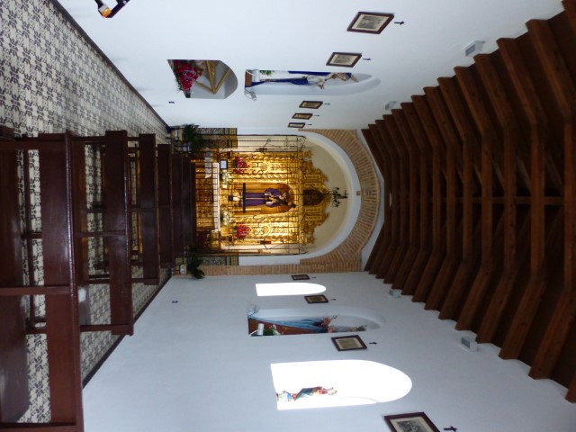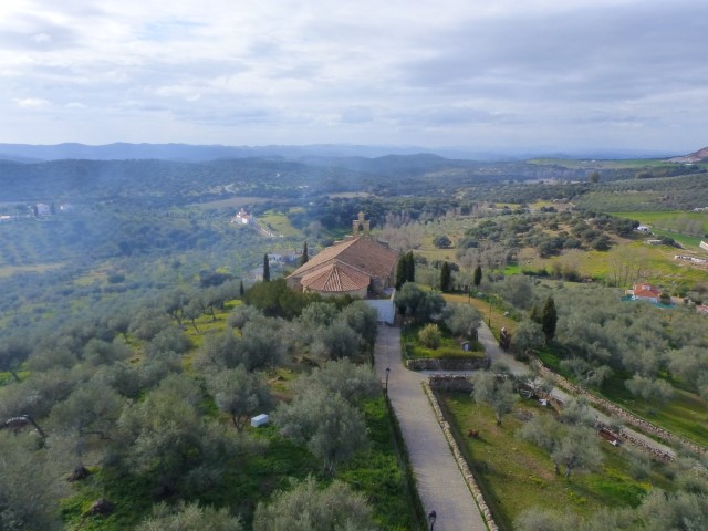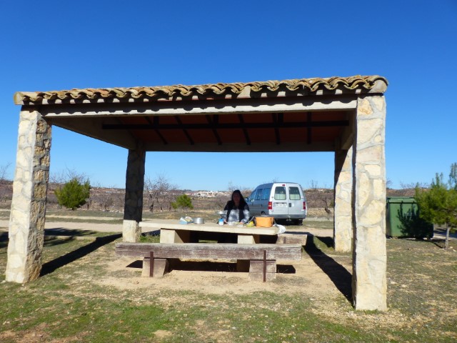 On prend la route direction Ubeda et Baeza, on s’arrête pour déjeuner près d’une chapelle pas très loin de la 4 voies. C’est un endroit où manifestement les espagnols viennent pique niquer le week end : il y a plein de tables et bancs maçonnés. Mais en ce lundi de janvier ensoleillé, on est seuls ..