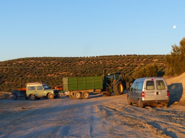 Arrêt pour la nuit près de la petite ville de Vilches , qui sur son promontoire domine un paysage d'oliviers s'étendant à perte de vue. Nous nous arrêtons sur un petit chemin d'exploitation au milieu de ces mêmes oliviers.