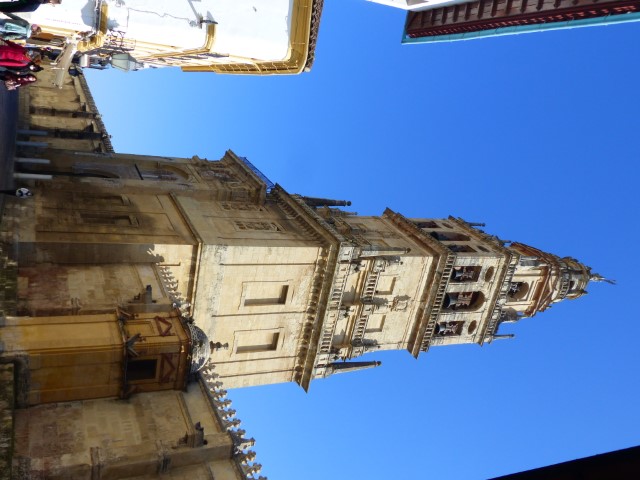 Du coup on réserve le minaret pour 13H30 (après un gros bug de la billetterie automatique…), et on court Plaza de Las Tendillas, d’où doit partir la visite guidée d’Oway Tour, reconnaissable à ses parapluies et tee shirt bleus. Bon, il doit faire 4 degrés et le soleil brille de tous ses feux, donc on a des doutes pour les parapluies et tee shirt mais on attend quand même. D’autres touristes font comme nous, mais le seul guide qu’on voit avec un parapluie n’est pas le bon : son parapluie est orange. Bref, après une demi heure à scruter les couleurs de parapluies inexistants, on abandonne et on part à l’autre bout de la ville, en se perdant un peu dans les ruelles et les plazas.