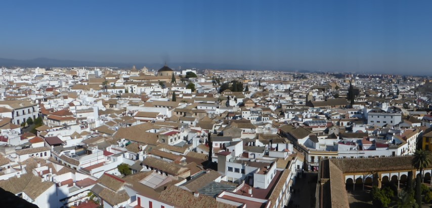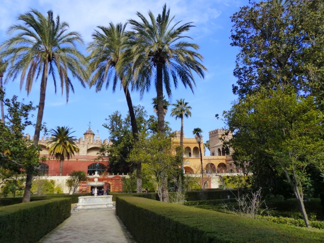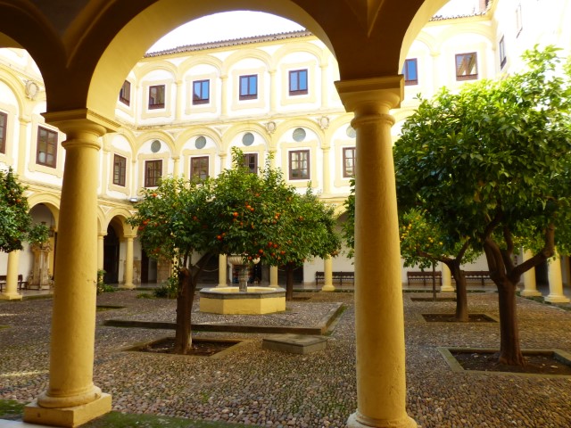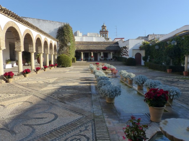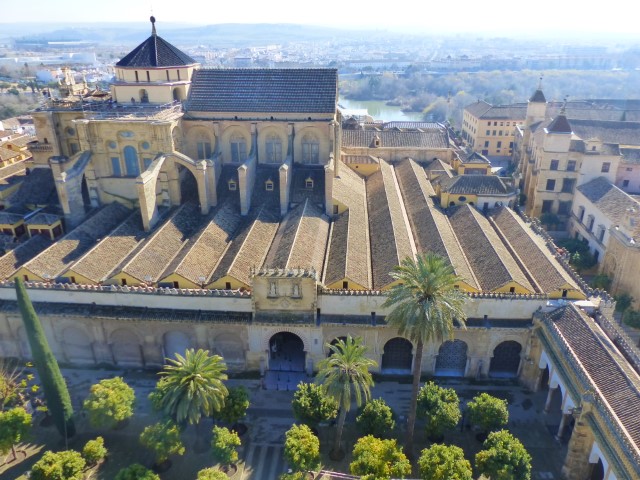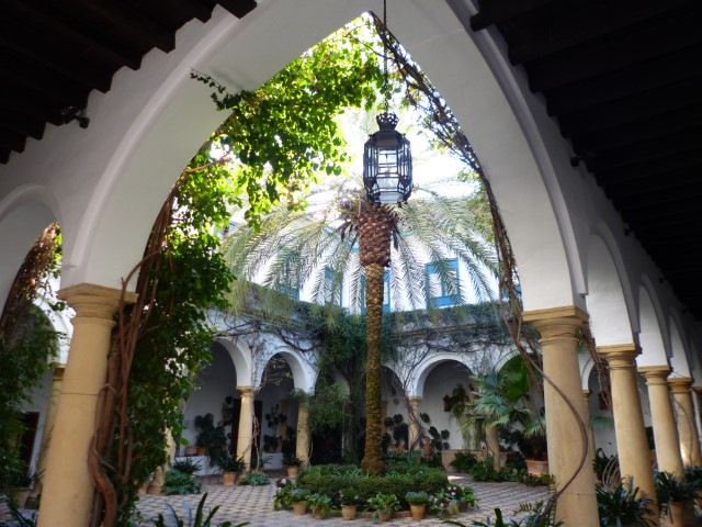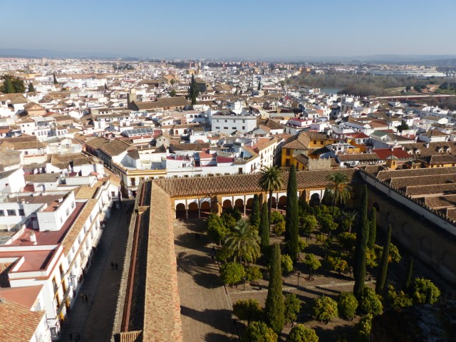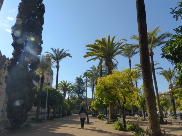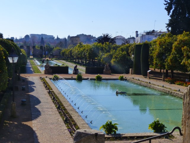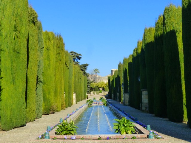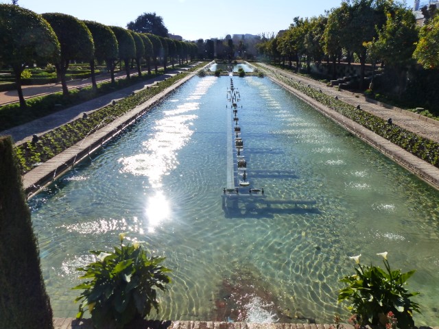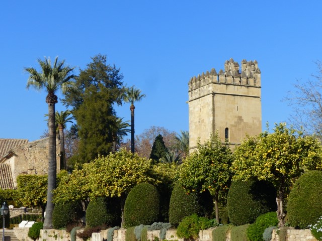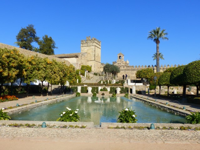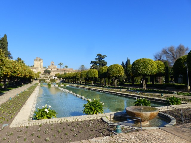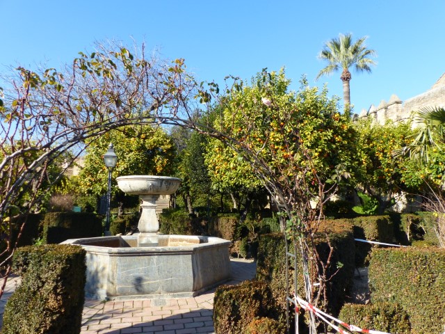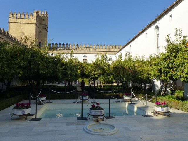 Cette bonne affaire étant faite, il est temps de nous lancer à la découverte de la ville. La Mezquita Cathédrale est à 5 mn à pied, malheureusement quand on arrive à 14H elle vient de fermer pour la sieste. Du coup c’est pique nique au bord du Guadalquivir, puis visite de l’Alcazar, château Des rois catholiques, là où Ferdinand et Isabelle ont dit au revoir à Christophe Colomb qui partait pour le Nouveau Monde. L’intérieur du château est vite visité, mais nous nous attardons dans les patios et jardins, avec fontaines, orangers, citronniers, palmiers, et quelques topiaires.