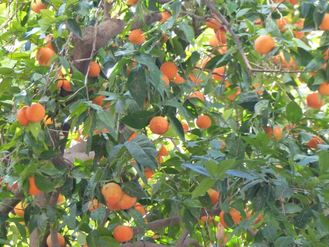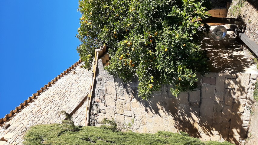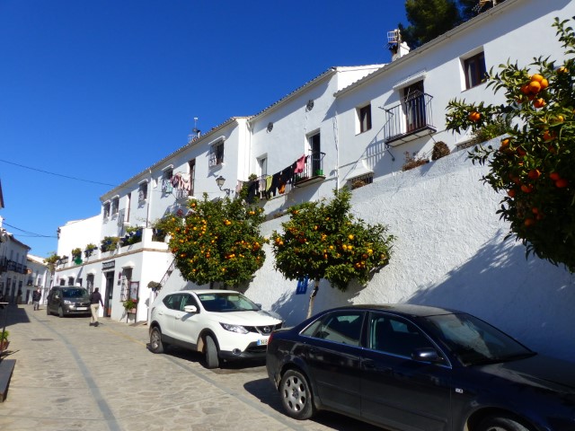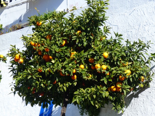 On s'arrête pour déjeuner dans un petit village près de (oops, petit oubli à combler...). Les maisons sont magnifiques, les habitants ne doivent pas être des pauvres espagnols... En plus, vu les infrastructures communes, il doit y avoir des bbq et des fiestas tout l'été (qui dure de début mars à fin novembre...). Nous cotoyons nos premiers orangers et nos premiers citronniers.