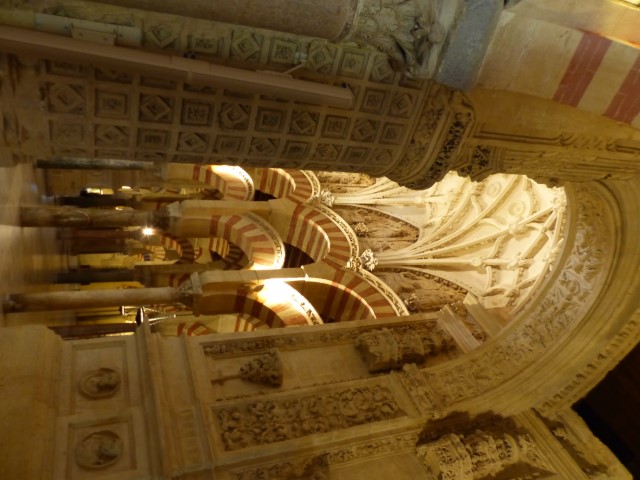 Puis c’est la découverte de la cathédrale qui nous fait un grand effet … toutes ces arches blanches et rouges à perte de vue … et au milieu la grandeur du choeur de la cathédrale. 14000 m² de batiment, 5 agrandissements au fil du temps. C’est tout simplement magnifique !