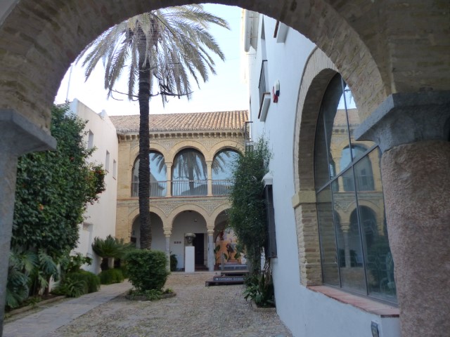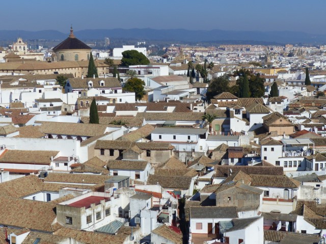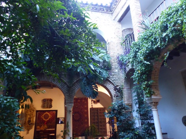 On arrive à Cordoue en tout début d’après midi, on gare notre voiture au parking de la Calle Sevilla, puis on s’enquiert d’un hébergement. Le 1er que l’on avait repéré sur Lonely Planet est « fermé définitivement » selon Google Map (mention que l’on voit après avoir bien cherché dans le quartier...). Du coup on repère une pension dans la Juderia (ancien quartier juif très mignon avec ses rues piétonnes et ses petites maisons blanches immaculées, aux portes et fenêtres soulignées de couleurs…). Arrivés devant, elle est fermée, on croit lire sur un panneau qu’elle n’ouvre qu’à 20H. Heureusement on est coachés par un anglais (ou un canadien ? Enfin, un gars qui parle anglais…), qui nous conseille sa pension à lui, "The Dreamers", juste à côté, qui serait selon lui la moins chère du quartier. Effectivement il ne paie que 29 euros ? Comble de chance, la taulière arrive juste à point nommé. Et l’affaire est faite … la chambre est propre, d’un style plutôt monacal, blanche et bleue, ça nous ira très bien. Et le tout pour 31 euros la nuitée !