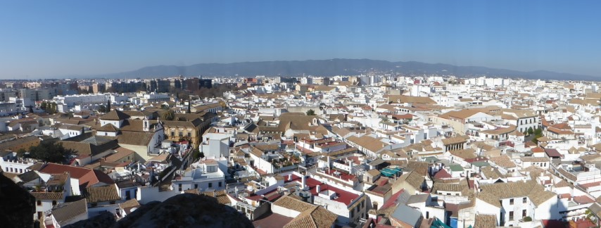 En redescendant et avant de regagner la voiture, on va boire un coup à la terrasse d’un café (en fait on veut profiter de ses toilettes), puis on décide – vu le temps – d’abandonner nos plans de bord de mer et de remonter vers Séville directement. Apparemment, la météo prévoit plus de soleil dans le nord de l’Andalousie que dans le Sud les prochains jours …