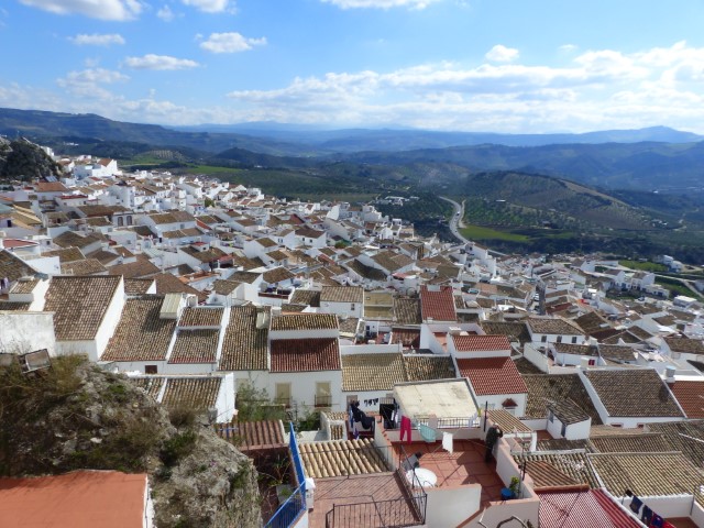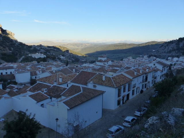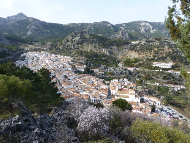 Fin de la rando vers 15H. On décide de profiter d’une vue sur Grazalema au soleil (que l’on n’a pas eu hier), en montant à un mirador (sommet coiffé d’une statue et d’un ermitage en ruine) d’où on découvre effectivement toute la ville scintillante.