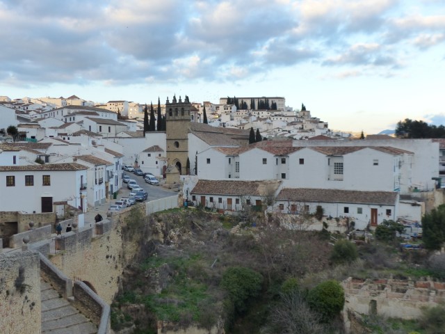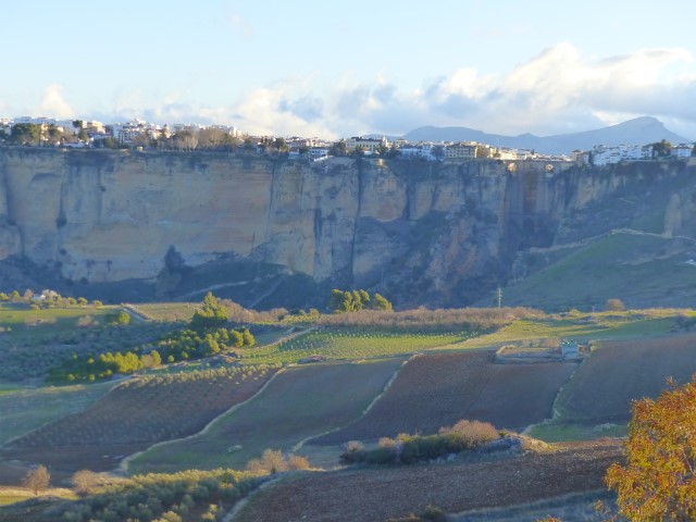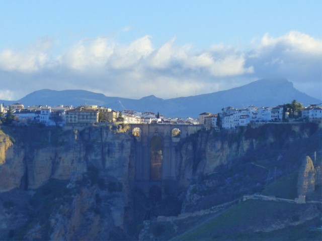 Passage par Ronda la Vieja et le site archélogique, fermé, puis arrivée à Ronda vers 17H30. Un coup d’oeil à la Plaza de Toros (les arènes peuvent se visiter mais ferment à 18H et on veut voir l’attraction de la ville de jour : le pont neuf), puis Pont Neuf au soleil couchant,