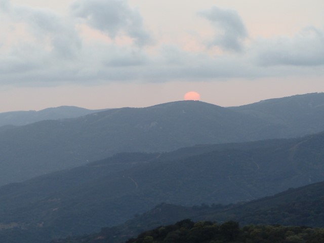 La piste se termine au bout de 2 ou 3 H (elle devait bien faire 50 km, je pense, à rouler à moins de 20 km/h pour éviter les trous….), nous arrivons au petit village minier d’El Centenillo où nous dînons de croquetas et de patatas bravas au coin du feu, puis nous profitons d’une magnifique aera recreativa à l’écart des routes et pistes. Nous la découvrirons mieux le lendemain matin avec le levé du soleil). Petit déj et route sans fin vers Perpignan pour passer la nuit auprès d’une retenue d’eau (très beau) et retour à la maison sous un temps devenu gris.