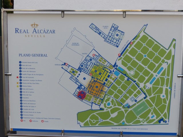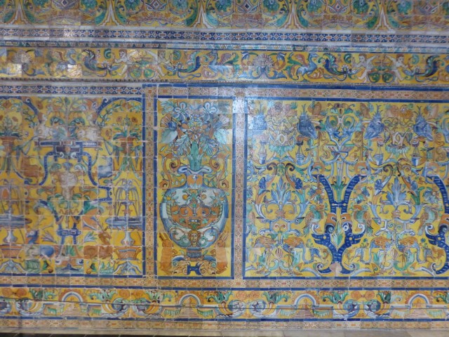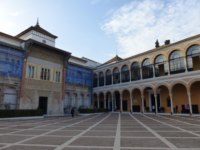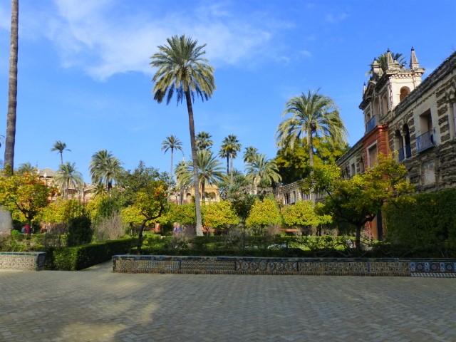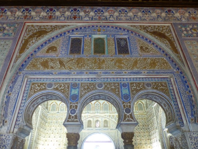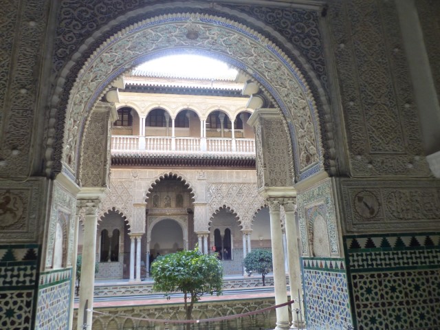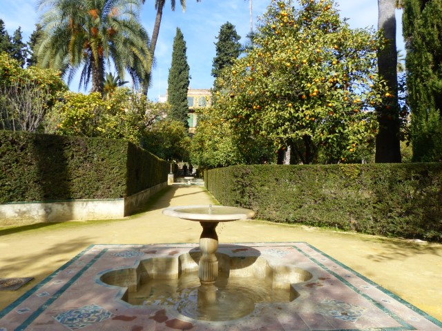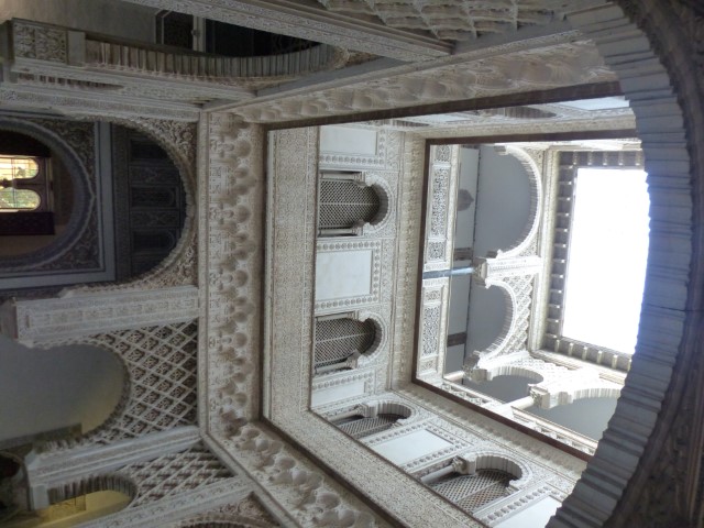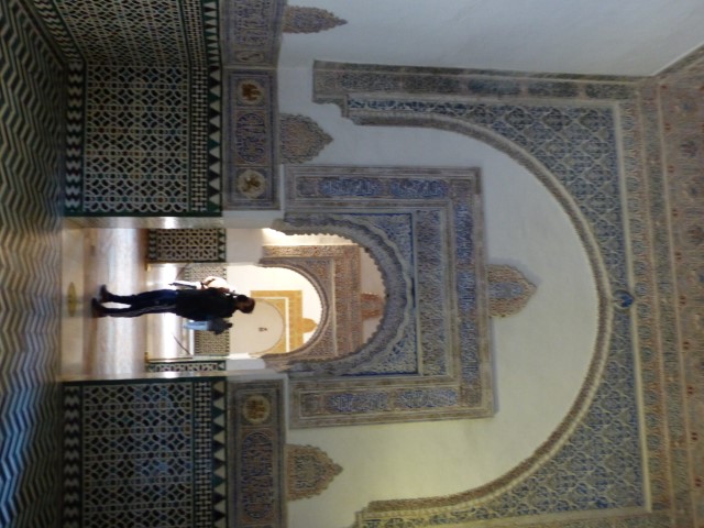 Départ pour l’Alcazar où nous passons bien 3H à déambuler dans ses salles, patios, jardins, galeries, à admirer les murs les plafonds les orangers les fontaines les portes le stuc les azulejos les céramiques les tableaux et j’en passe (pour plus de détails voir un guide…)