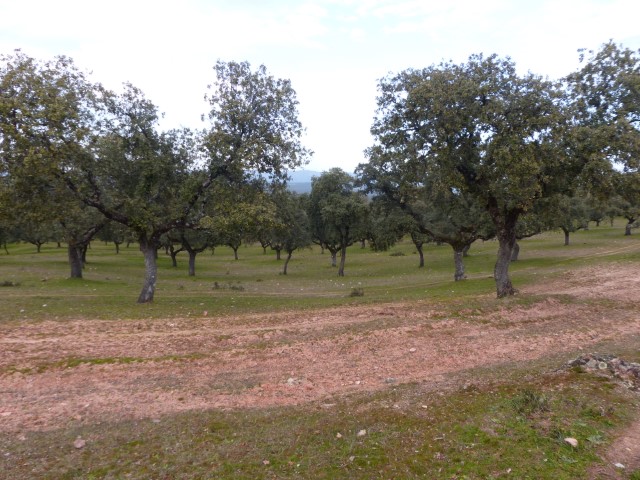 On continue notre piste à travers la montagne parsemée de chênes lièges, de « fincas » (domaines = grandes fermes), de troupeaux de vaches et de fils barbelés.