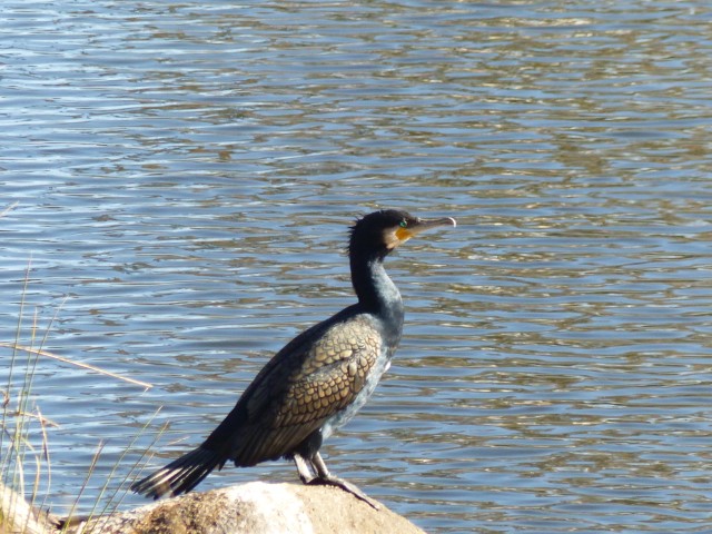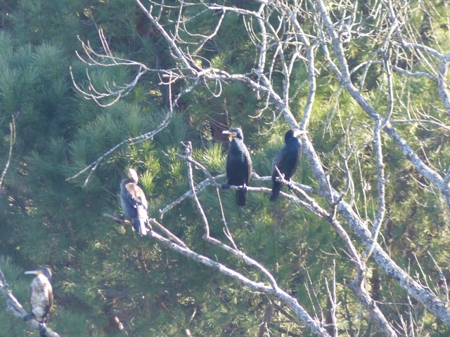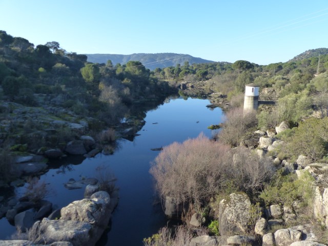 Grand soleil sur le haut des montagnes (mais grand froid sur notre aera recréativa, au bord du ruisseau El Encinerejo).On décide de prendre la piste pour aller déjeuner au peu plus loin, au pied du barrage de l’Embalse. En plus on voit les 4X4 se succéder dans cette direction : assurément ce sont des tours accompagnés pour l’observation des animaux ...on va donc les suivre ! Effectivement au pied du barrage, plein de gens avec des lunettes et des gros objectifs. Certains sont à l’observatoire des loutres, d’autres un peu plus haut sur le pont qui enjambe la rivière.