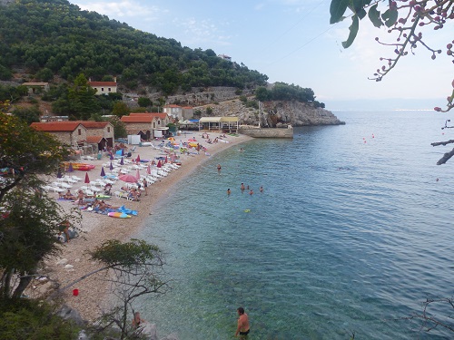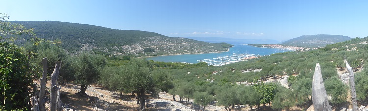 Histoire de ne pas nous retrouver sans camping cette fois, nous décidons de nous rendre au camping puis de visiter à partir de cet endroit. En fait notre destination se situe sur l'ile de Cres et il faut prendre un bac pour la rejoindre. On tourne un peu en rond mais on trouve l'embarcadère et tout un flot de touristes. Sur l'ile nous prenons une route très étroite (il y a des emplacements réservés pour se croiser) et nous rejoignons Beli, une petite crique au Nord de l'ile. C'est un cul de sac avec un petit camping ombragé d'oliviers. La plage est un tas de galets où trouver un endroit pour poser sa serviette relève de l'exploit.