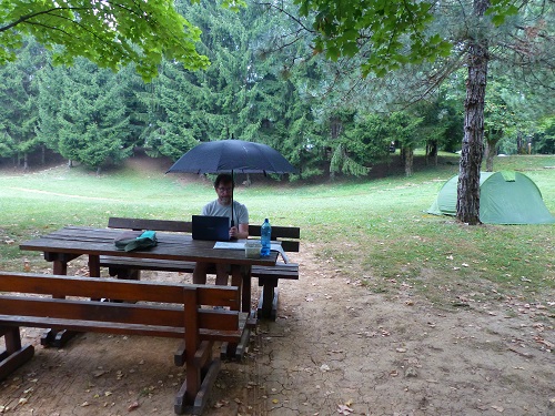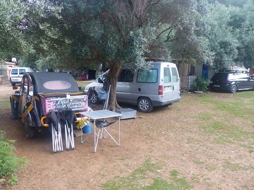 Nous nous posons au camping de Danica, tout proche. C'est un camping sans emplacement délimité où nous trouvons notre place parmis les tentes et le campings car.