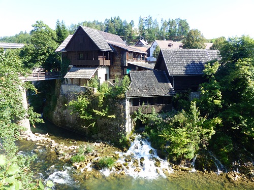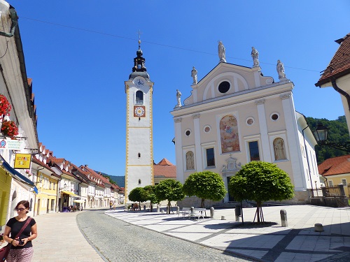 Arrêt à Kamnik, visite du village et braquage de la banque pour refaire le plein d'euros. Finis les Kuna de Croatie. Ce village est le berceau de la famille d'Isabelle.