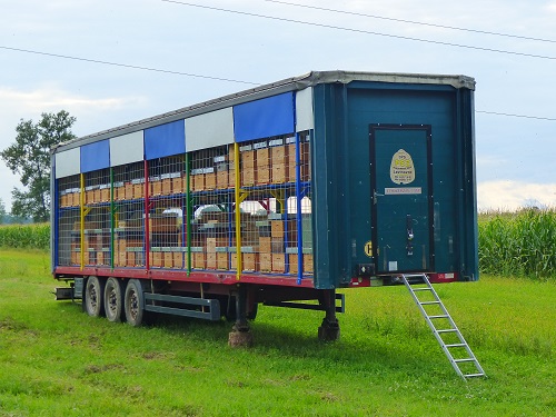 Le retour nous semble un peu long. Nous passons à côté de ruchiers; pour certains, des remorques de ruches empilées qui peuvent sans doute être déplacés facilement selon la floraison alentours.