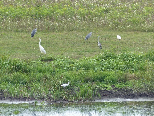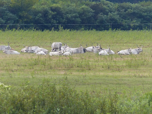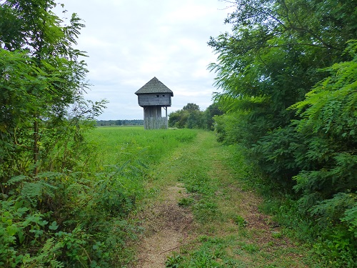 Nous poursuivons la journée par une balade sur un parcours ornithologique. 'est une petite rando qui déambule le long de prés et d'espaces aquatiques. Nous cheminons à proximité de chevaux, de cochons traditionnels, de vaches rustiques (au loin), entretenus par l'association qui entretien le site. Deux tours en bois permettent l'observation des oiseaux. Elles ont été construites sur le modèle des tours utilisées il y a fort longtemps pour prévenir l'entrée d'envahisseurs aux frontières du pays.