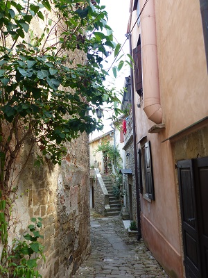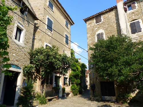 Notre route nous mène à Grozjnan, un village perché très bucolique. Les ruelles du village sont pavées de pierre, les maisons reprises par des artisans ou plutôt des commerçants d'arts manuels.