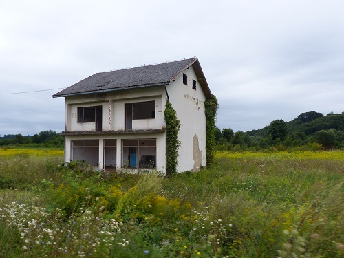 Comme constaté en Croatie, les villages sont une seule et grandre ligne droite où les maisons s'alignent de part et d'autre, sans aucune rue intérieure. La vitesse étant limitée à 40km/h, il est partfois un peu long de passer d'un bout à l'autre de cet alignement de maisons. Toutes les maisons n'ont pas la chance d'être traitées de la même façon; certaines sont à l'abandon, d'autres dans leur jus et les plus chanceuses en parfais état. Les anglais avec leur ancien fourgon de la Royal Mail nous font signe de la main en nous croissant. Apparemment ils sont en voyage depuis 2 ans.