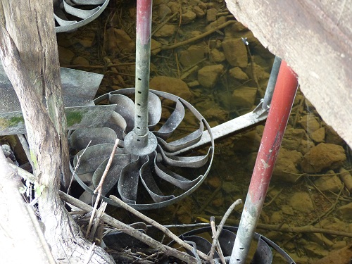 A la pause déjeuner, nous nous arrêtons sur une aire, nous en avons vu très peu depuis notre entrée dans le pays, qui se trouve être à proximité d'un moulin à eau désaffecté. La particularité de ce moulin est qu'il dispose d'hélices horizontales.