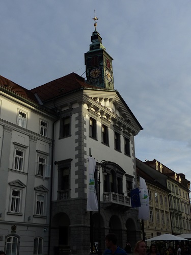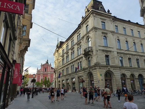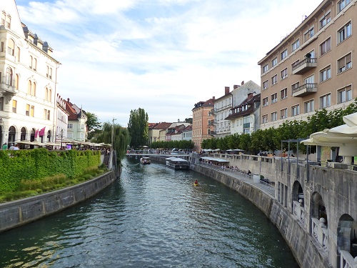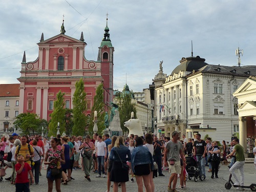 Ljubjana est parcouru par une rivière qui sépare les terrasses de cafés et de restaurants en deux. Des animations, spectacle d'un ours blanc (déguissement), percussioniste particulièrement entrainant, joueurs de musiques, et même un match de basquet, égayent un peu plus les rues.