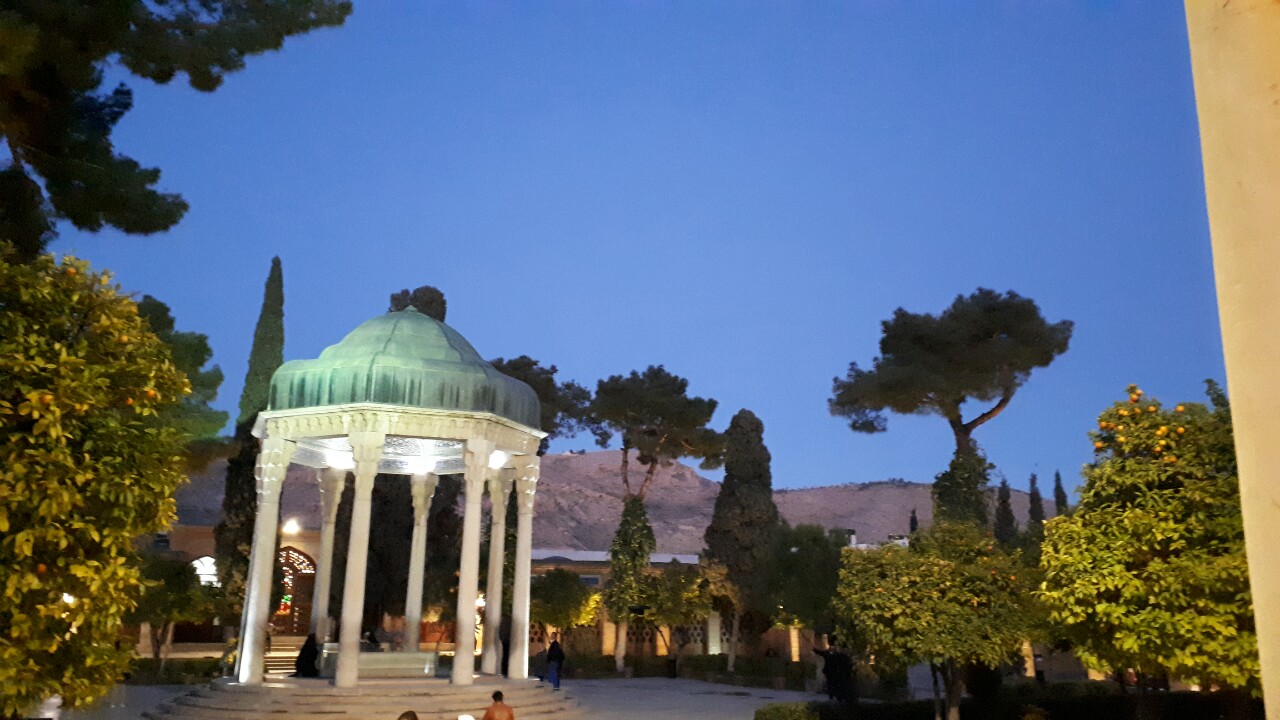 Visite du tombeau de Hafez (poete iranien).beaucoup d'émotion chez certains visiteurs. Lecture d'un poème dans sa version perse puis en francais.