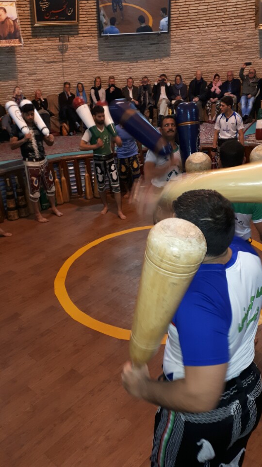 Nous filons dans la vieille vie dans sa voiture construite sur une base de peugeot 405 mais avec une carrosserie toute différente. Circulation infernale pour un occidental. Apres le repas, nous parcourons la ville à pied. Bazar couvert, mosquée avec faïence tres travaillée, musée de l'eau, salle de sport iranien dans un ancien réservoir.