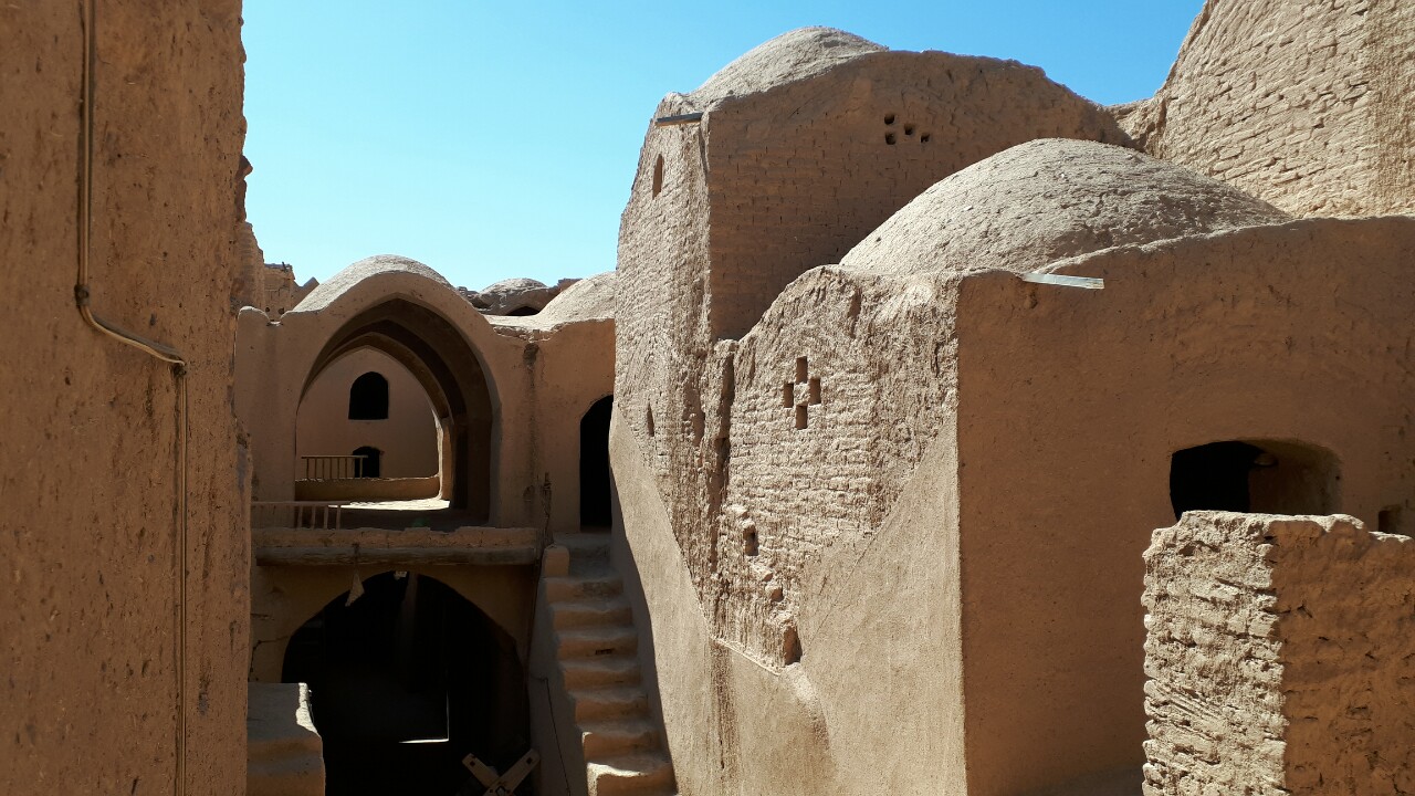 On reprend la route pour rejoindre et visiter ce qui est considéré comme la plus ancienne mosquée d'Iran: Fahraj. C'est un ancien temple de feu (lieu de culte zoroastrien) qui a été transformé en mosquée. Visite des restes d'une ancienne maison de feu à proximité. Dans ce bâtiment des personnes entretenaient un feu afin que chacun puisse en bénéficier à tout moment.