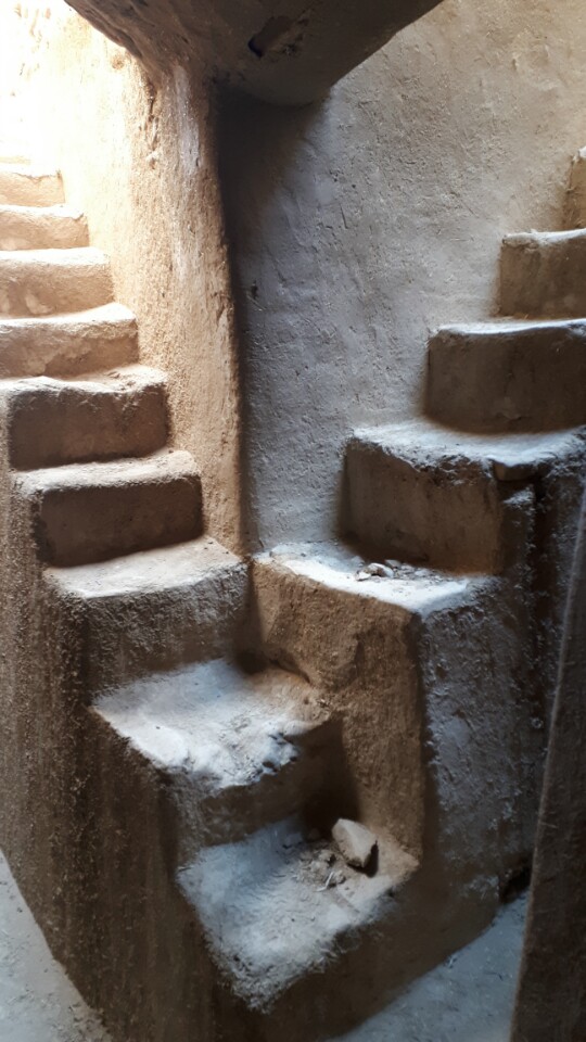 De multiples couloirs sur differents etages rejoints par des escaliers anti souris permettent de se perdre dans le site. En haut des toits une vue superbe sur les montagnes , le desert et le village s offre à nous, On déambule un bon moment dans ce lieu magique qui serait parfait poir une partie de cache cache. En plus on est tous seuls.