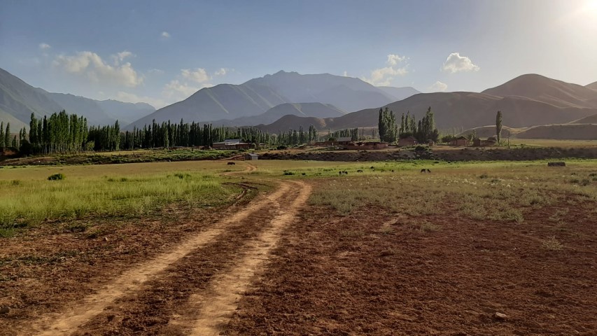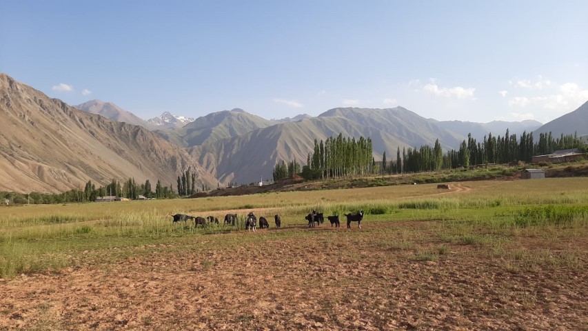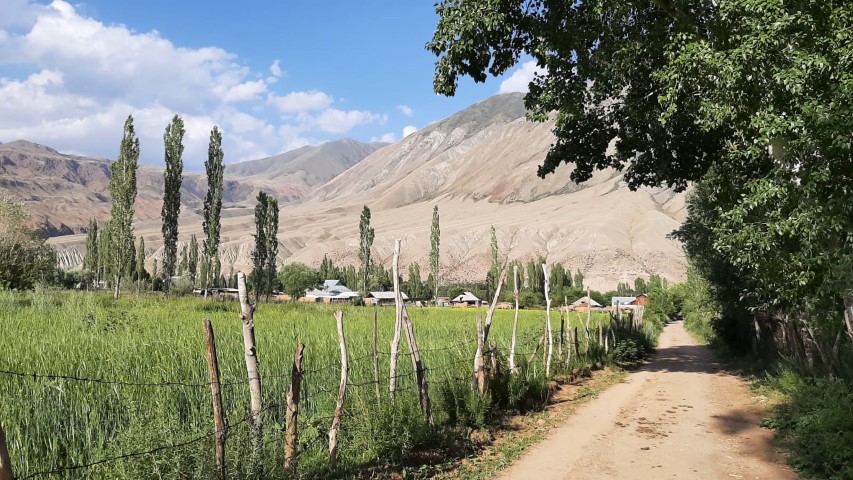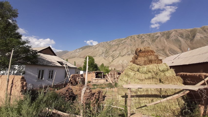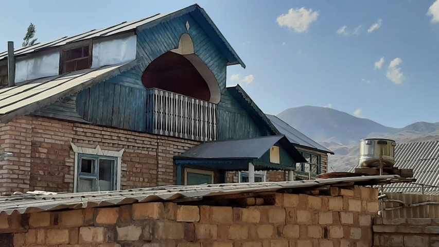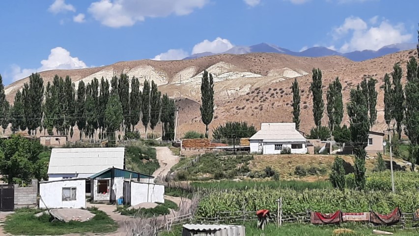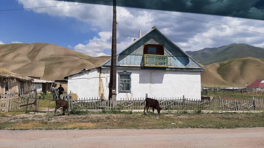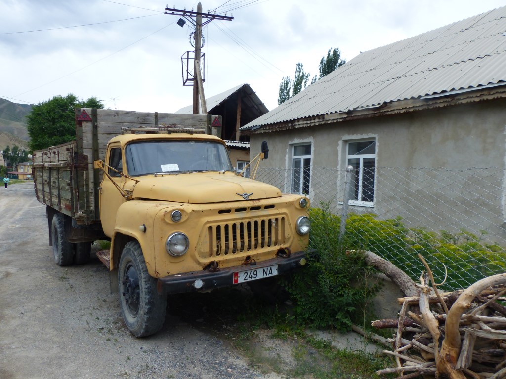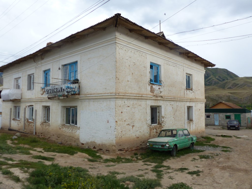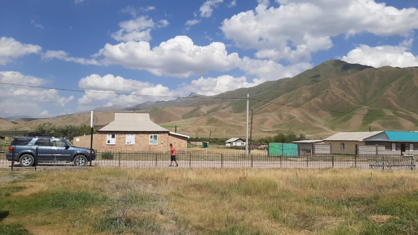 Didier va beaucoup mieux, il arrive même à avaler l’omelette à la saucisse herta servie au petit déjeuner. C’est confirmé : le médoc kirghize est plus efficace que l’immodium… Pour faire bonne mesure, Didier en prend un 2ème ce matin …. A la table d’hôtes nous faisons connaissance avec un couple d’américains en visite dans le coin pour « affaires » (apparemment l’homme est à la tête d’une ONG qui œuvre pour l’alphabétisation des femmes).