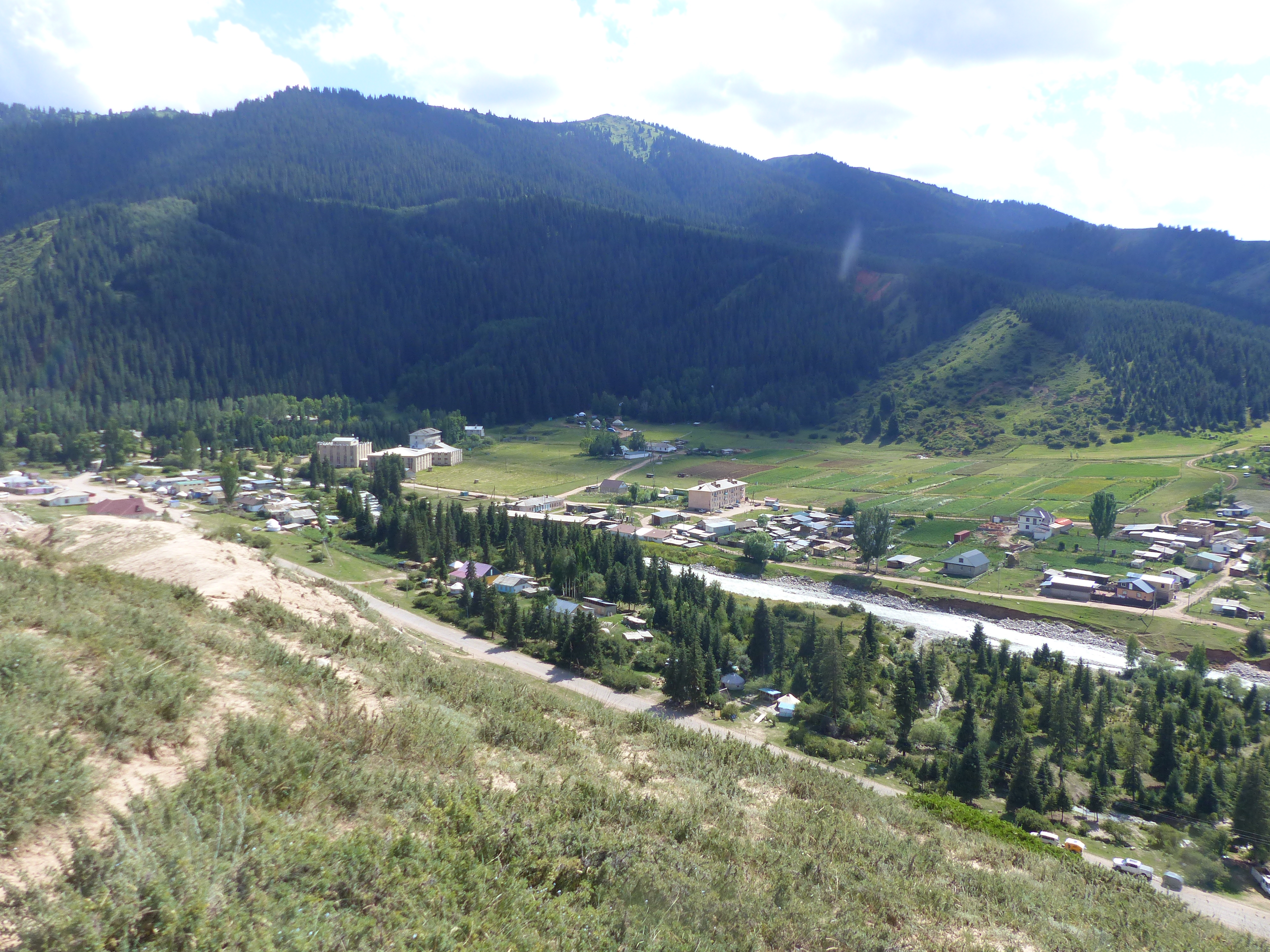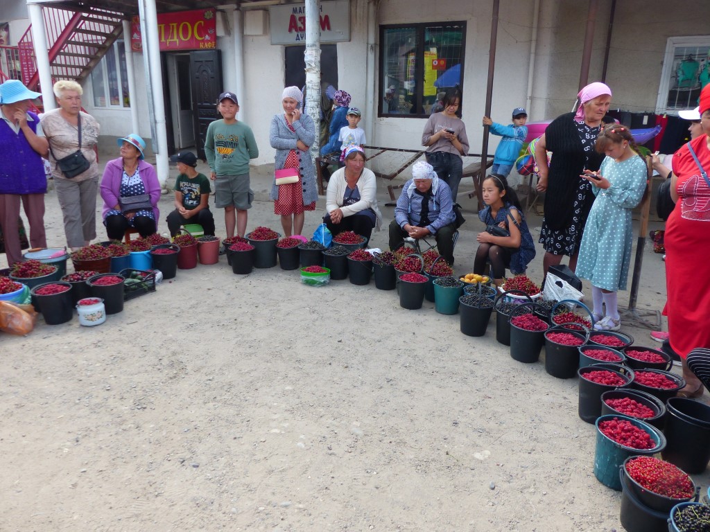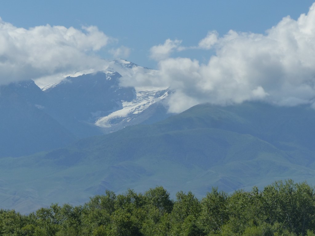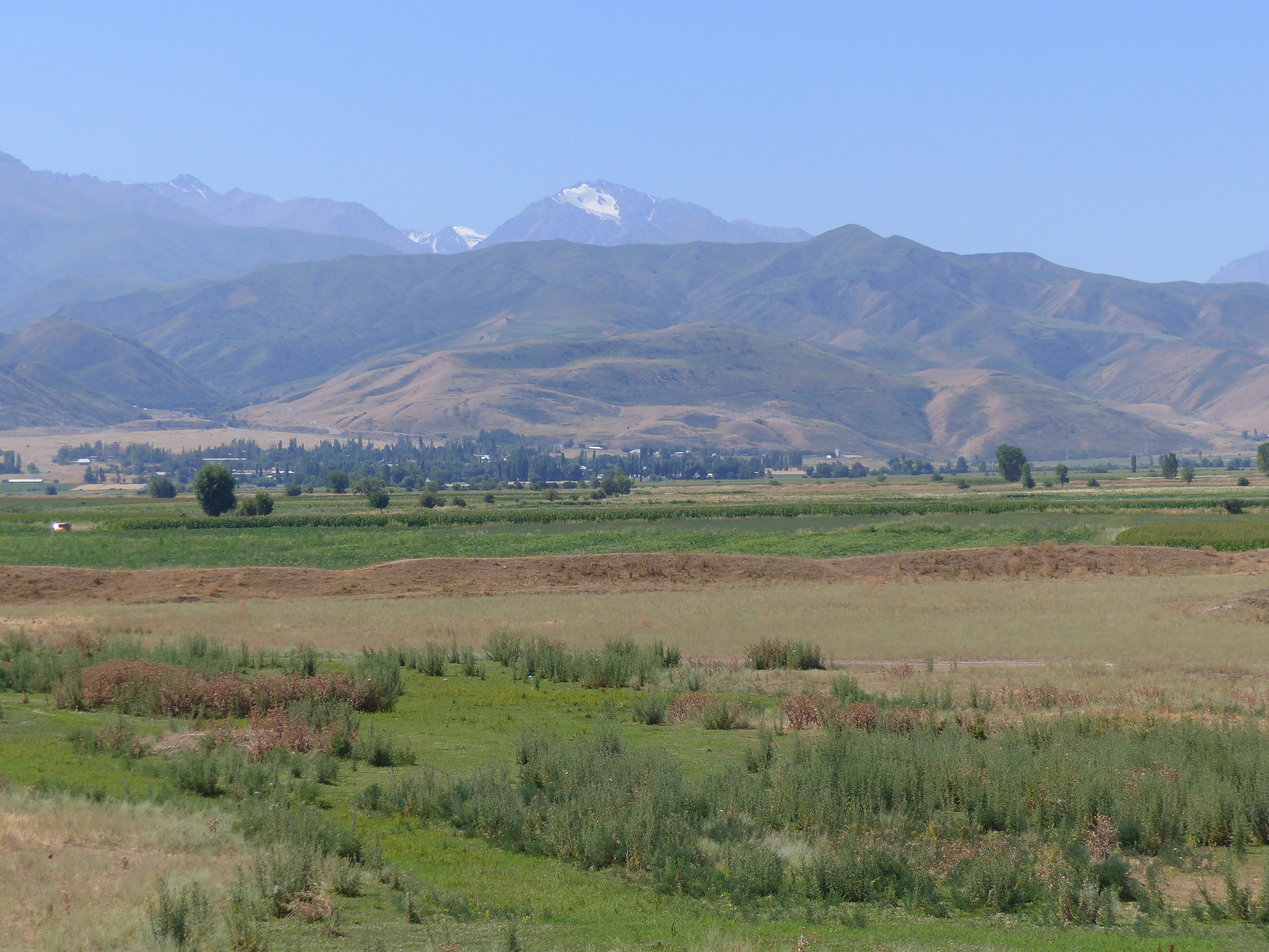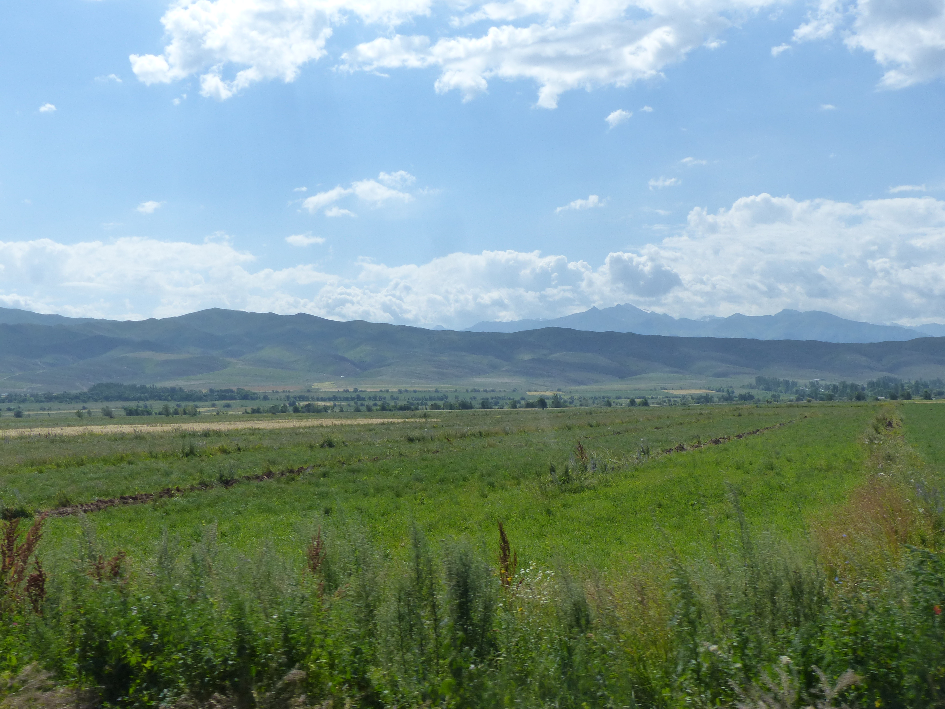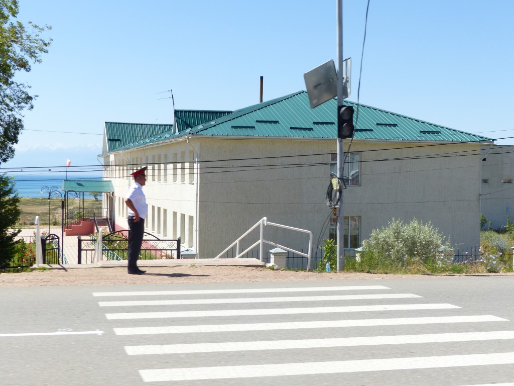 Ces visites culturelles étant terminées, nous quittons la ville pour rejoindre la ville de Cholton Ata, sur la rive Nord du Lac d’Issy Kul. La route dure à peu près 2H, nous traversons une riche région de champs de céréales bordés de peupliers. Nous arrivons à Cholton Ata pour le repas de midi (restau au bord de la grande route), non sans nous être étonnés des multiples policiers qui ponctuent le bord de cette route. Il y a en un tous les 100 m environ et ce sur plusieurs dizaines de kilomètres. L’explication est la suivante : demain a lieu dans cette ville la réunion des présidents des 5 pays STAN de la région (Kirghizistan, Ouzbékistan, Kazakhstan, Tadjikistan, Turkménistan). l’objectif est de discuter et de se mettre d’accord sur les règles commerciales de circulation des biens et services entre ces 5 pays (eau, charbon, gaz, produits agricoles ….). A priori 2 présidents sont déjà arrivés, et on attend les 3 autres dans l’après midi. Le but de la police est de dégager les côtés de toutes les voitures actuellement stationnées, et de sécuriser la zone… autant dire que la mobilisation policière est totale !