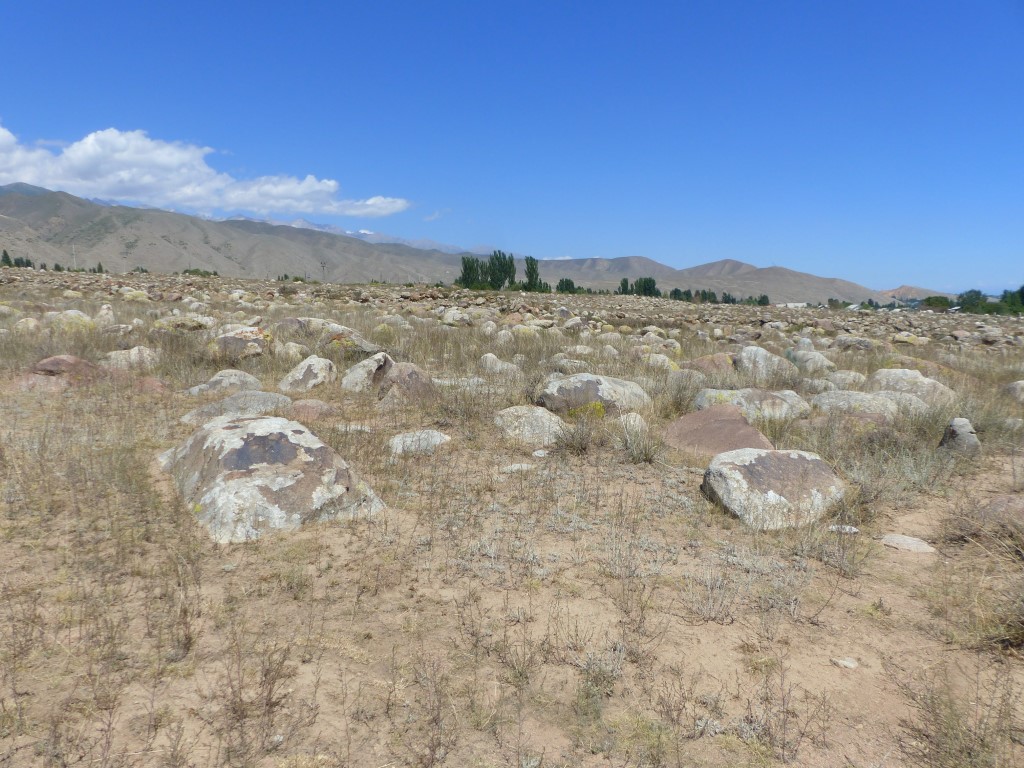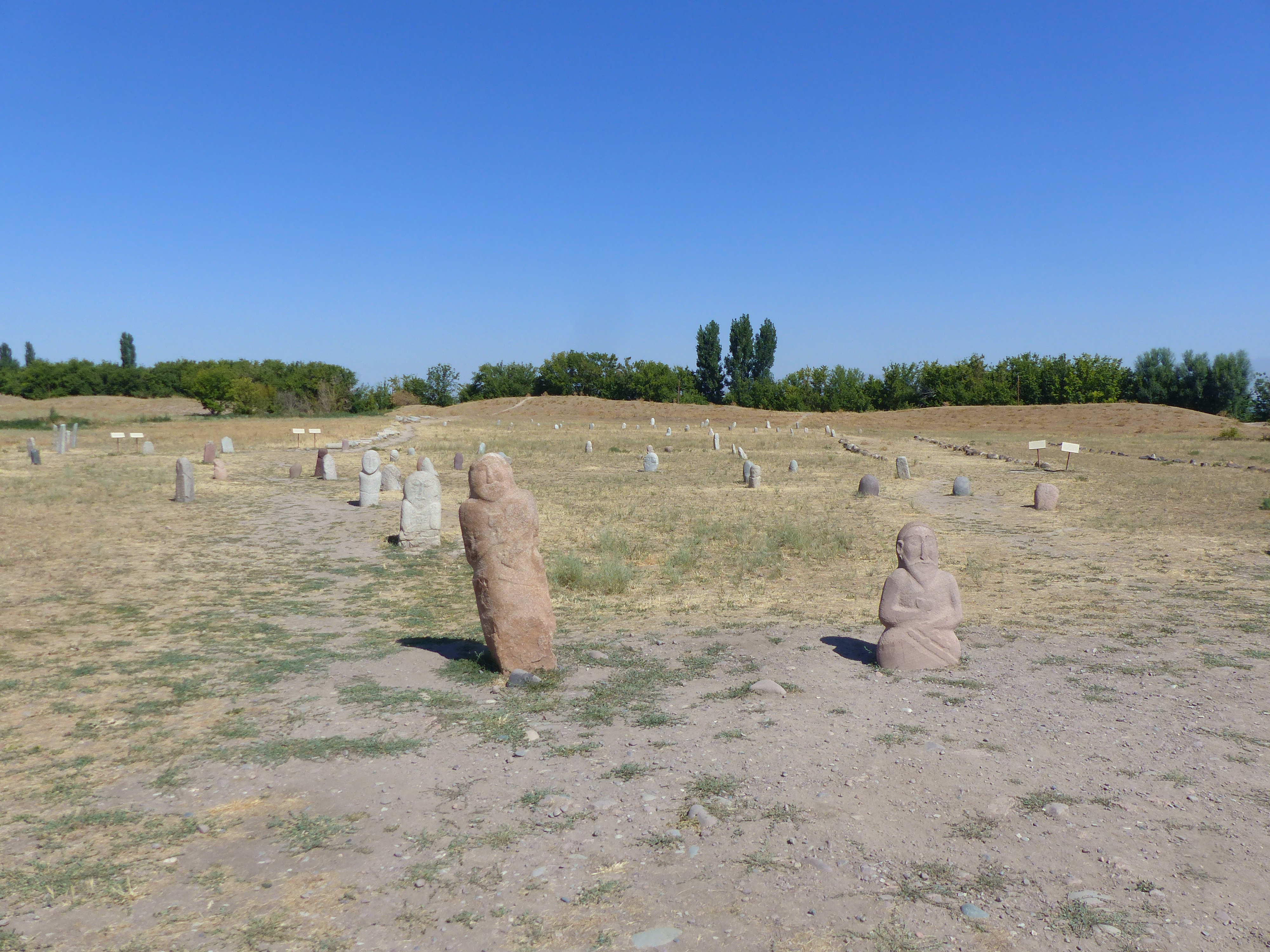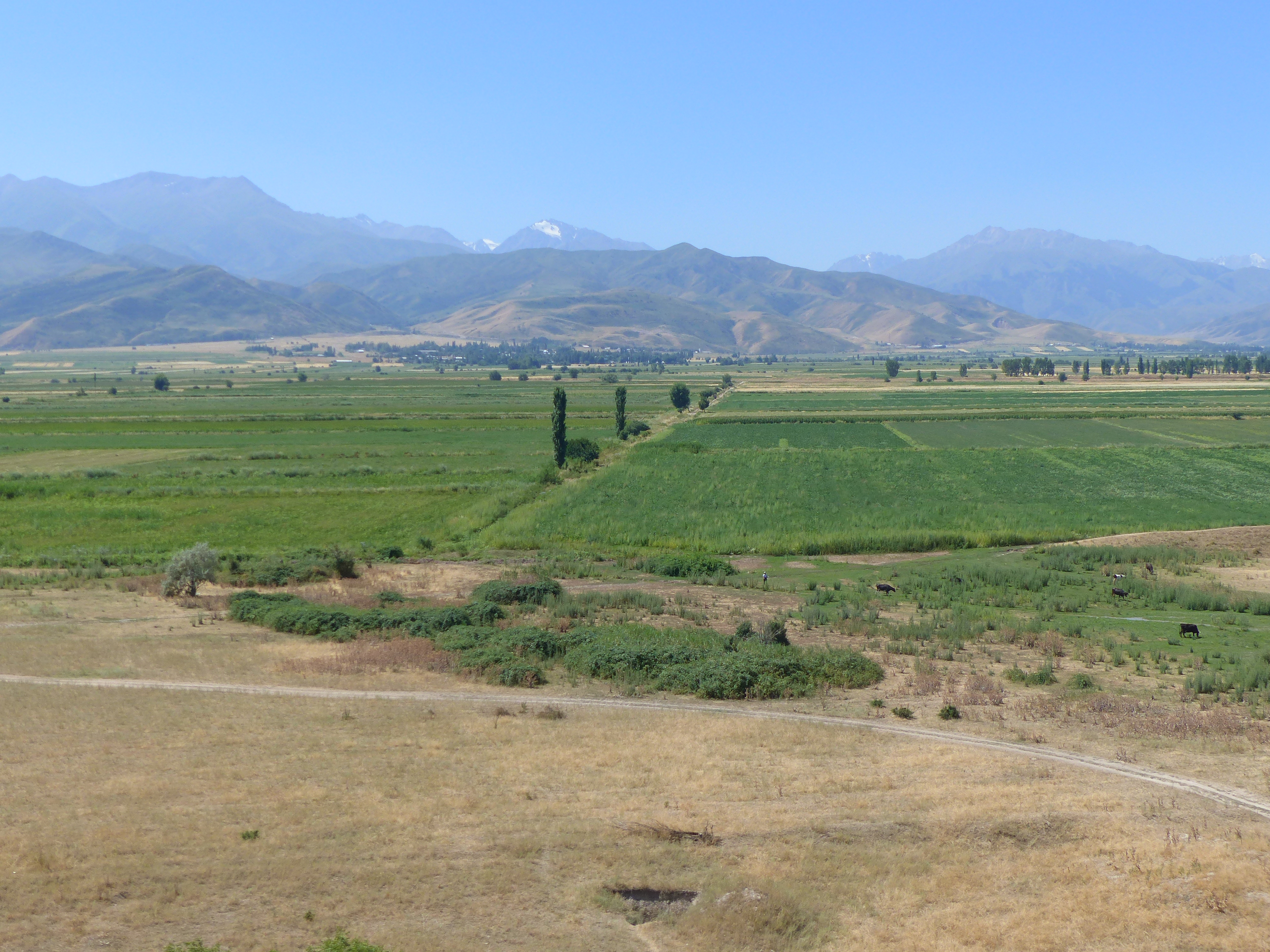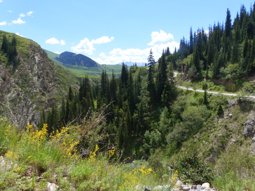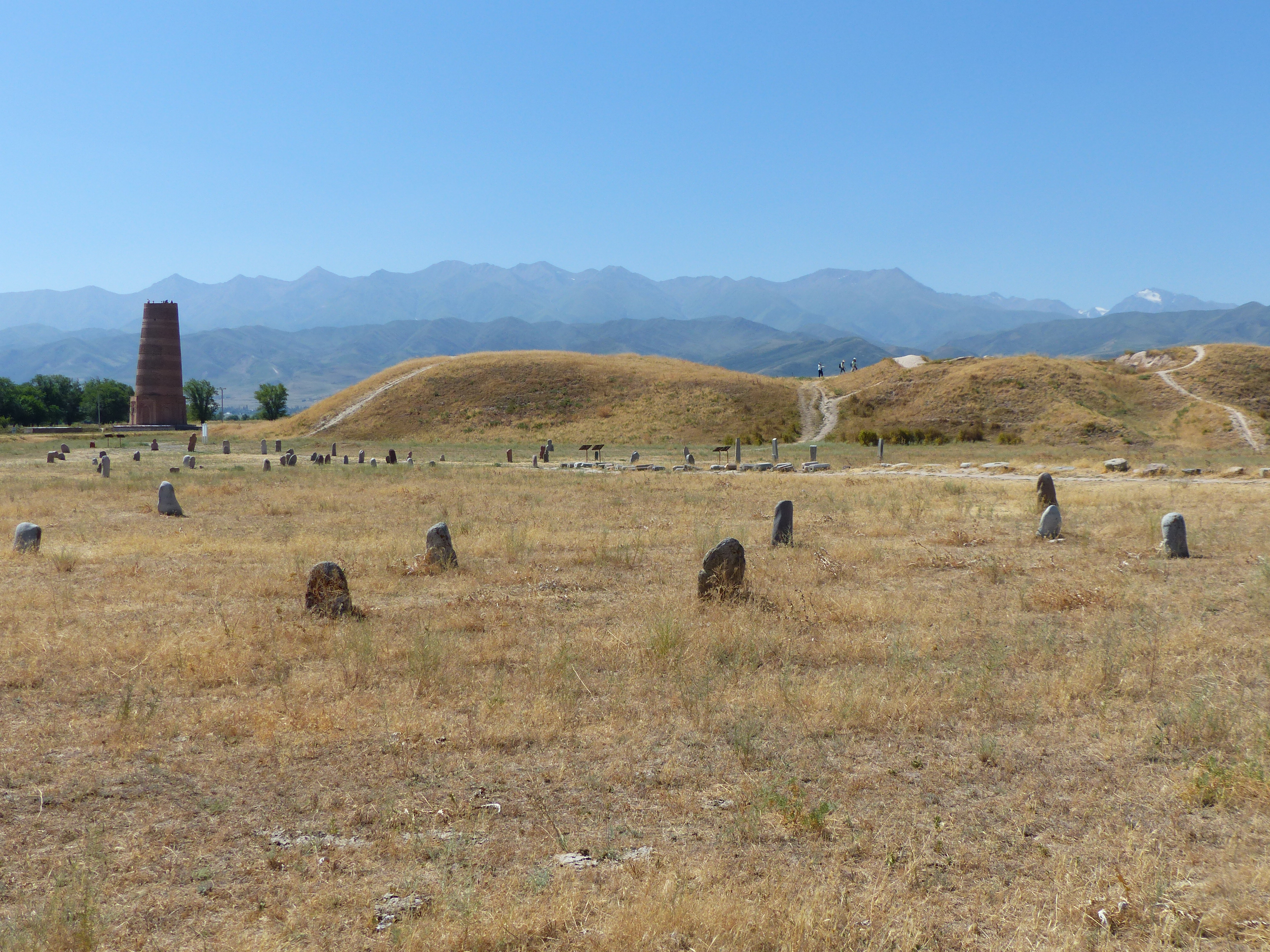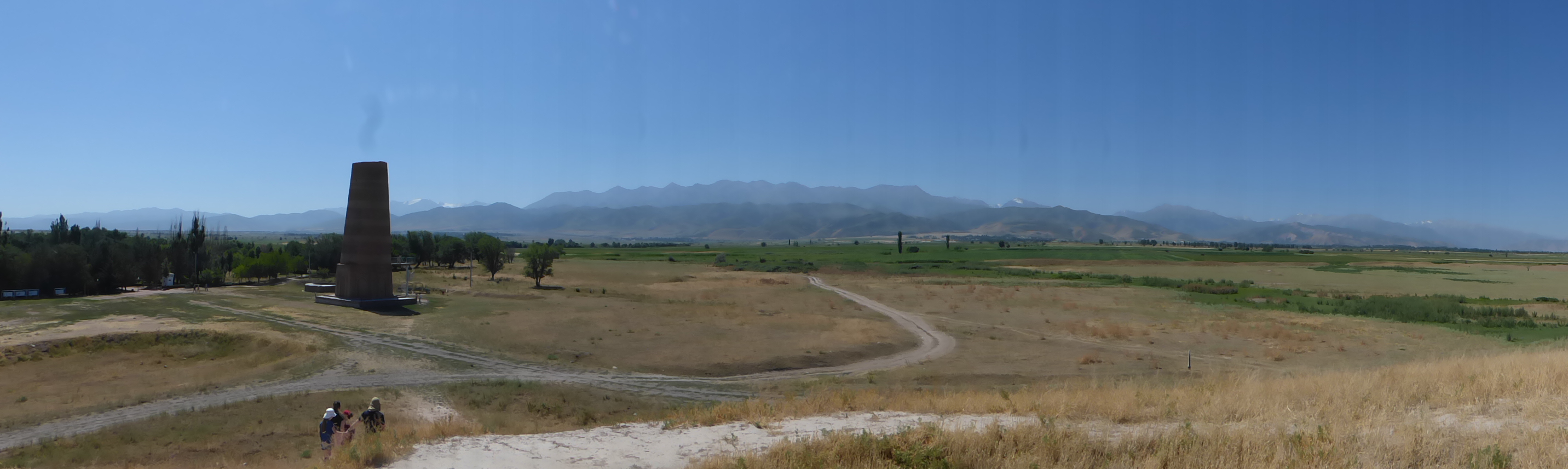 Ces visites culturelles étant terminées, nous quittons la ville pour rejoindre la ville de Cholton Ata, sur la rive Nord du Lac d’Issy Kul. La route dure à peu près 2H, nous traversons une riche région de champs de céréales bordés de peupliers. Nous arrivons à Cholton Ata pour le repas de midi (restau au bord de la grande route), non sans nous être étonnés des multiples policiers qui ponctuent le bord de cette route. Il y a en un tous les 100 m environ et ce sur plusieurs dizaines de kilomètres. L’explication est la suivante : demain a lieu dans cette ville la réunion des présidents des 5 pays STAN de la région (Kirghizistan, Ouzbékistan, Kazakhstan, Tadjikistan, Turkménistan). l’objectif est de discuter et de se mettre d’accord sur les règles commerciales de circulation des biens et services entre ces 5 pays (eau, charbon, gaz, produits agricoles ….). A priori 2 présidents sont déjà arrivés, et on attend les 3 autres dans l’après midi. Le but de la police est de dégager les côtés de toutes les voitures actuellement stationnées, et de sécuriser la zone… autant dire que la mobilisation policière est totale !