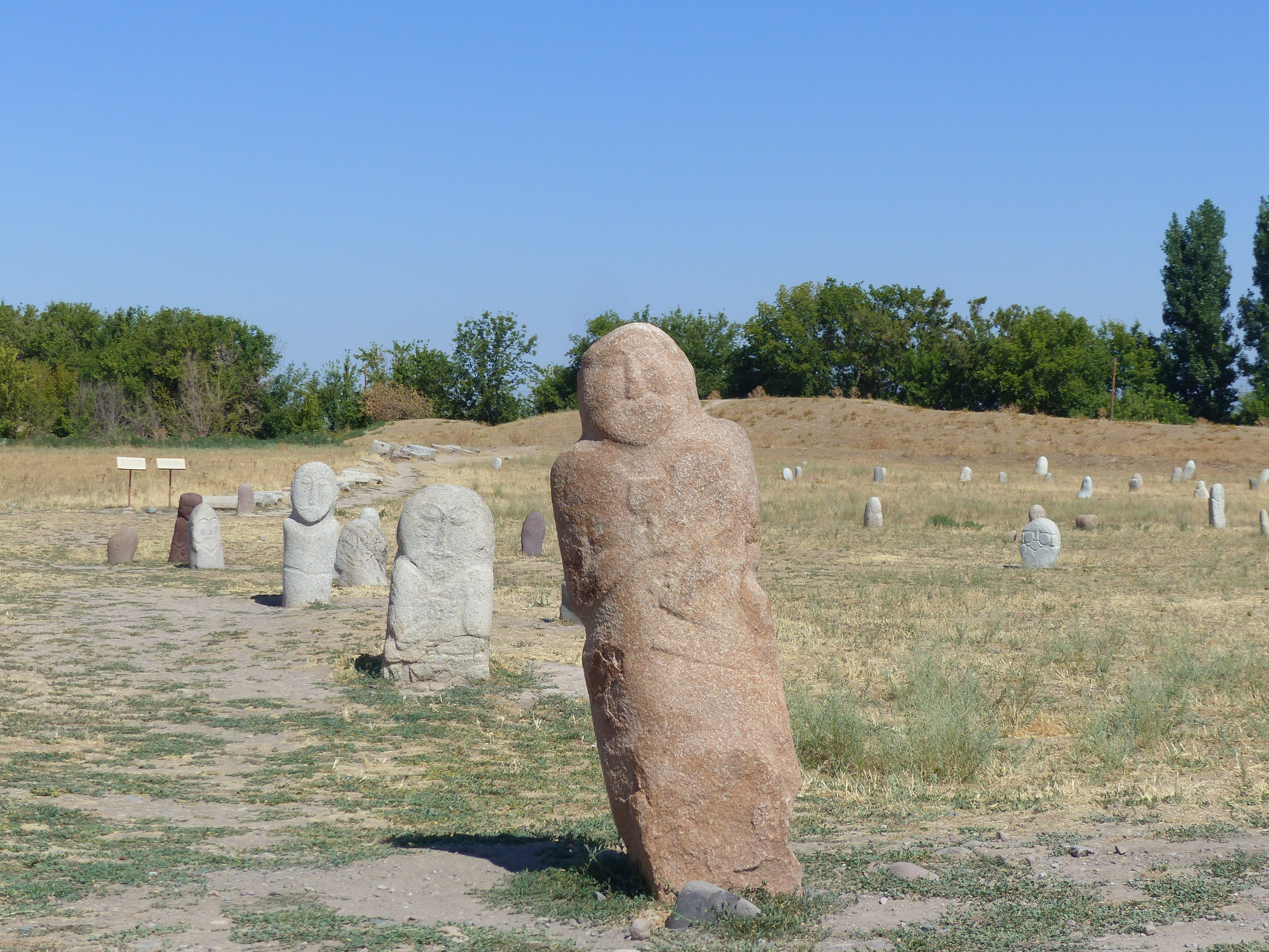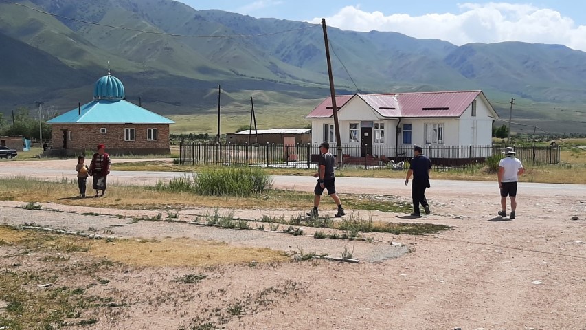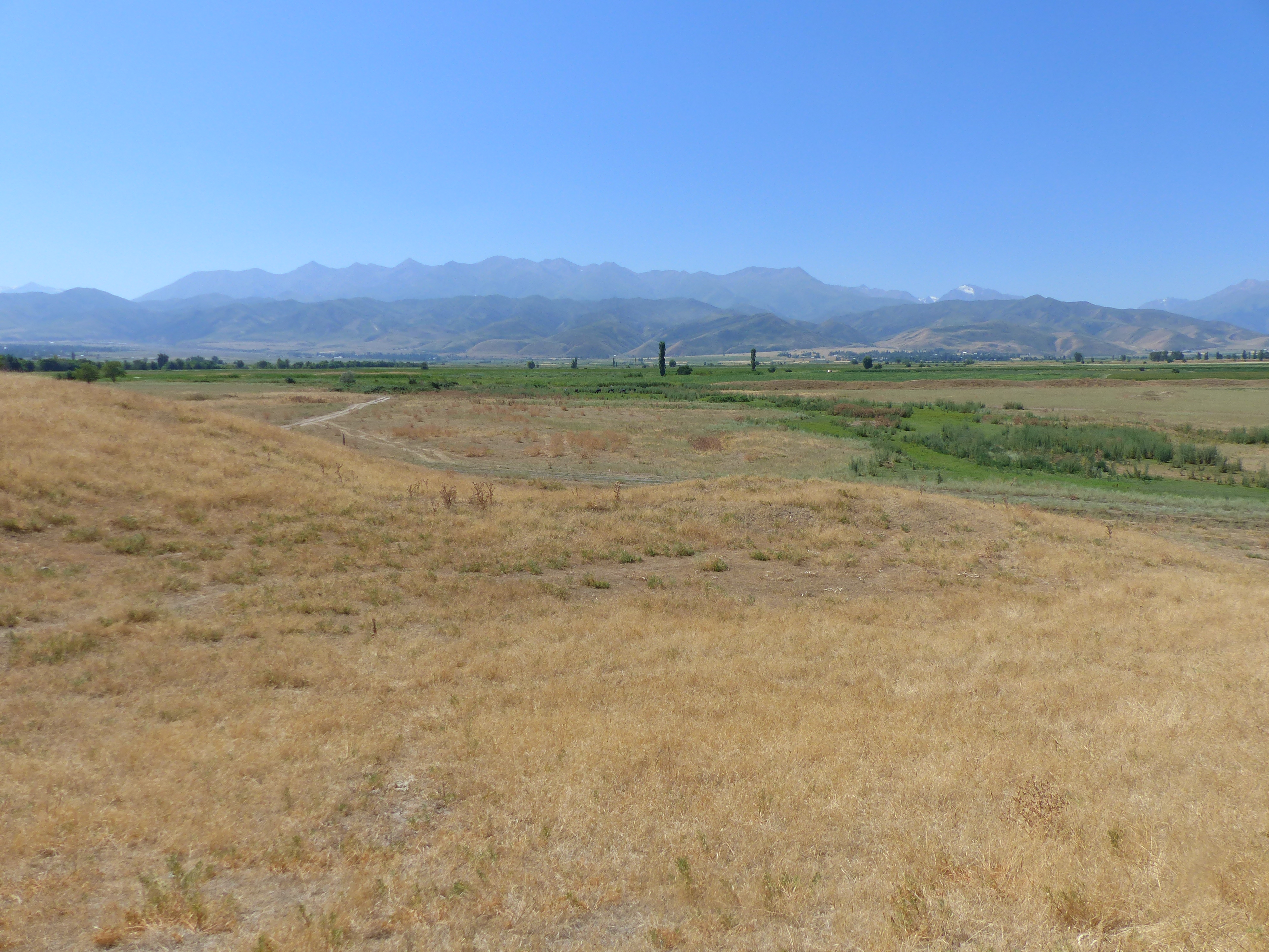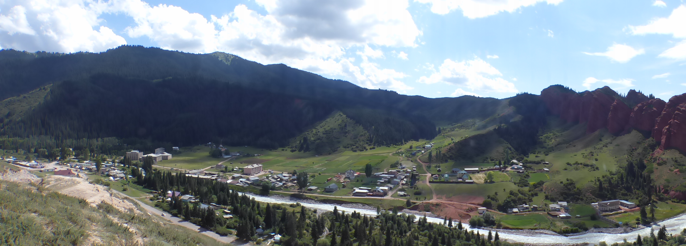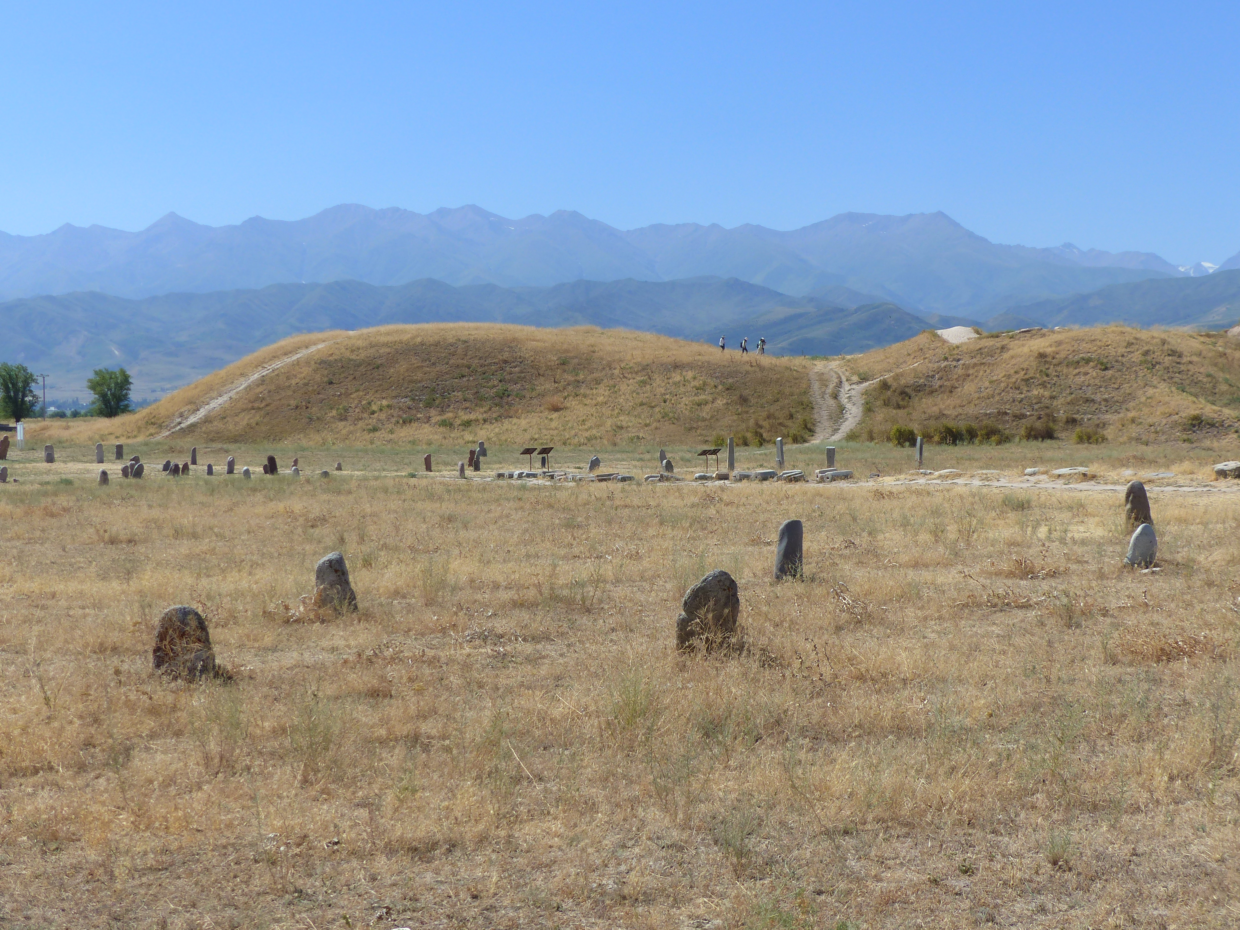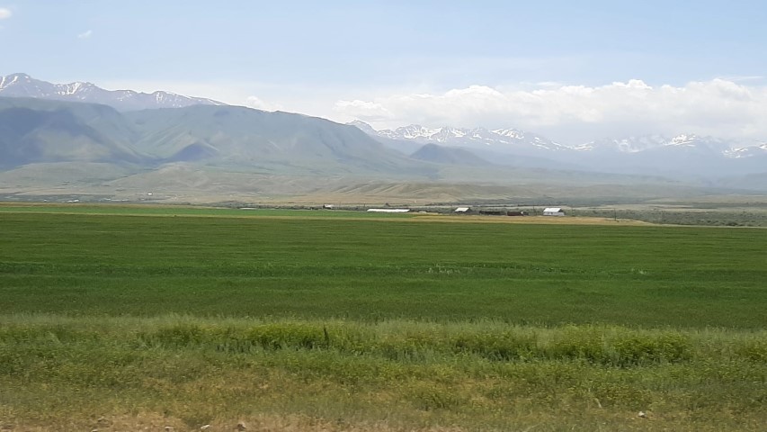 Ces visites culturelles étant terminées, nous quittons la ville pour rejoindre la ville de Cholton Ata, sur la rive Nord du Lac d’Issy Kul. La route dure à peu près 2H, nous traversons une riche région de champs de céréales bordés de peupliers. Nous arrivons à Cholton Ata pour le repas de midi (restau au bord de la grande route), non sans nous être étonnés des multiples policiers qui ponctuent le bord de cette route. Il y a en un tous les 100 m environ et ce sur plusieurs dizaines de kilomètres. L’explication est la suivante : demain a lieu dans cette ville la réunion des présidents des 5 pays STAN de la région (Kirghizistan, Ouzbékistan, Kazakhstan, Tadjikistan, Turkménistan). l’objectif est de discuter et de se mettre d’accord sur les règles commerciales de circulation des biens et services entre ces 5 pays (eau, charbon, gaz, produits agricoles ….). A priori 2 présidents sont déjà arrivés, et on attend les 3 autres dans l’après midi. Le but de la police est de dégager les côtés de toutes les voitures actuellement stationnées, et de sécuriser la zone… autant dire que la mobilisation policière est totale !