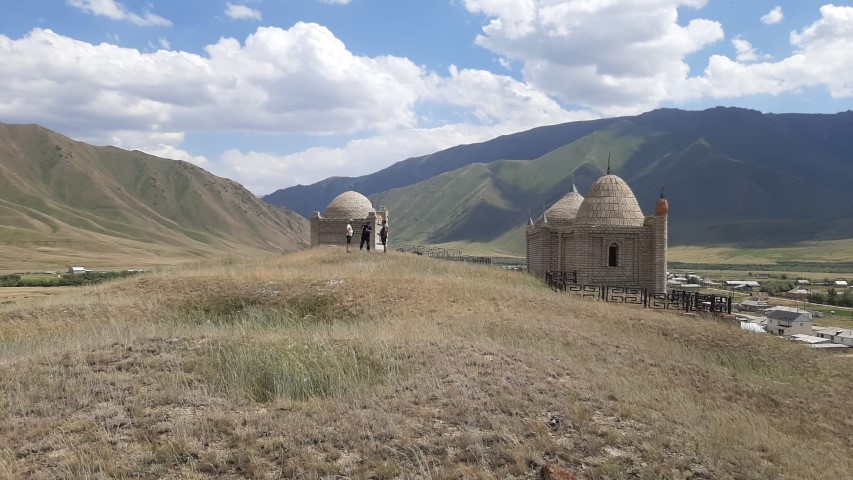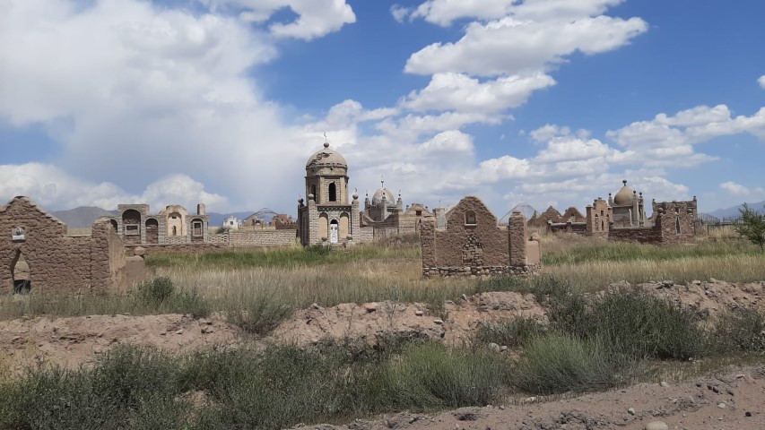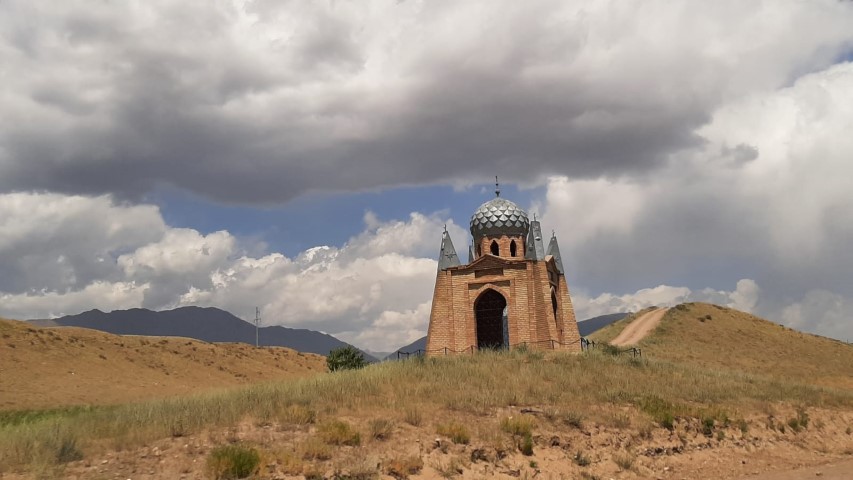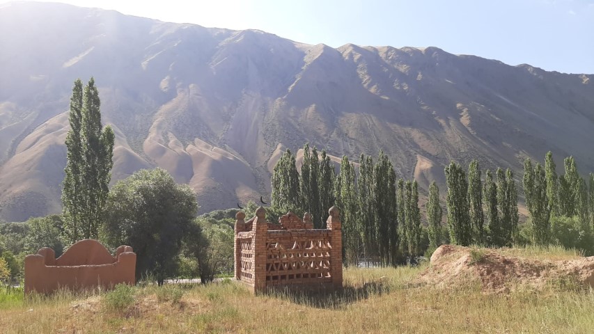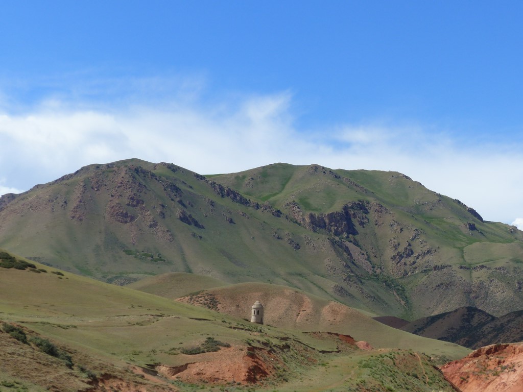 Nous passons au cimetière. Au Kirghizistan, les cimetières sont situés dans les montagnes sans espace spécialement réservé.