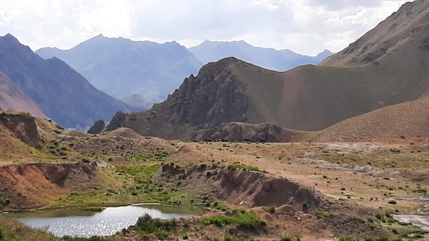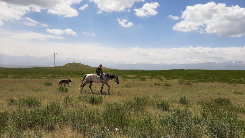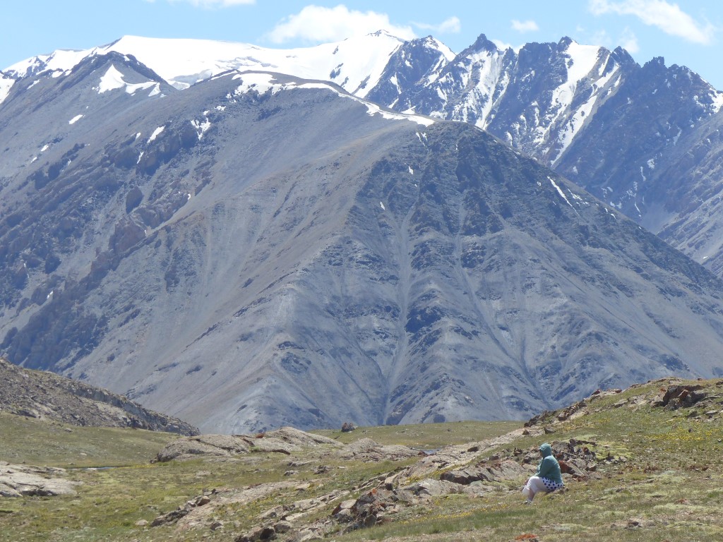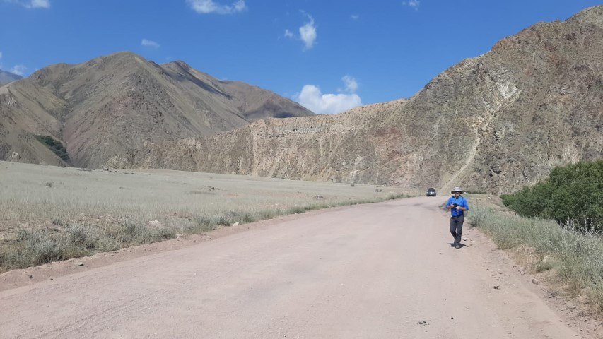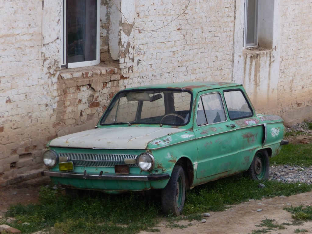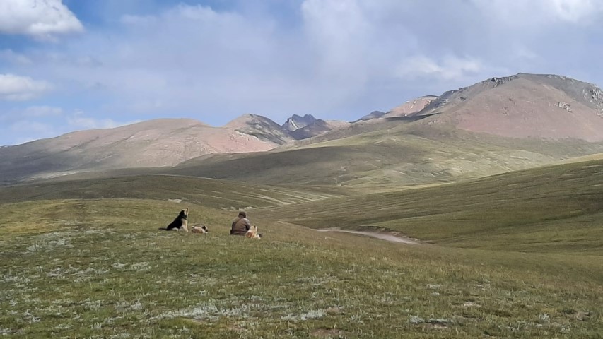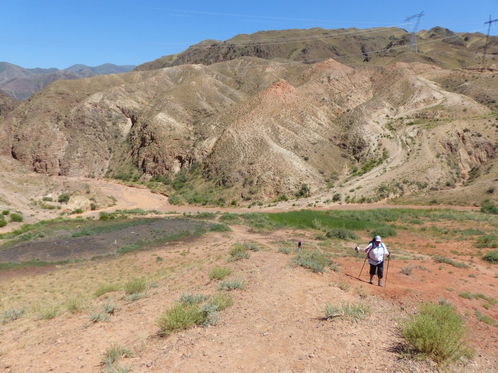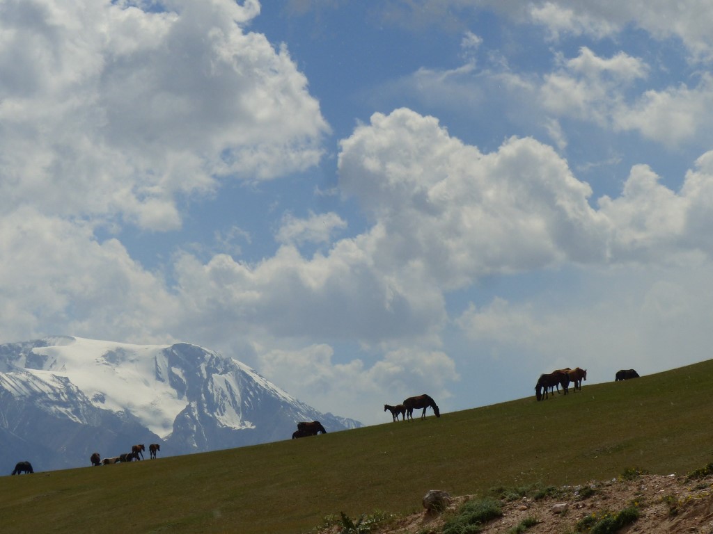 Nous reprenons une partie de la route faite hier et passons au col "d'Abel" à 3175m d'altitude. Une courte pause nous permet de discuter avec des Kirghizes arrivés dans une voiture russe de 40 ans. Ils sont équipés d'un détecteur de métaux. Ils recherchent du fer, mais aussi des vestiges datant de la route de la soie qui passit ici. S'ils trouvent de objets historiques, ils les revendent à un musée. C'est apparemment déjà arrivé. Le détecteur a été acheté sur internet via le site "Alibaba". Il coûte 10000 sum soit 40x250 sum, donc 40 mois de salaire moyen...!