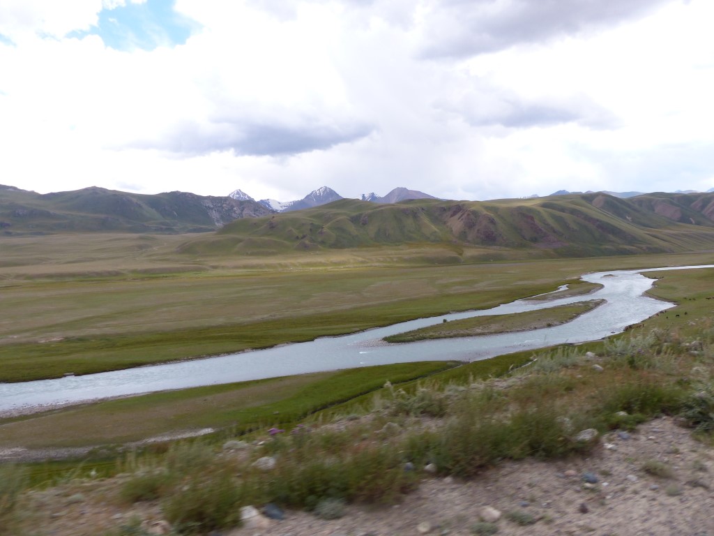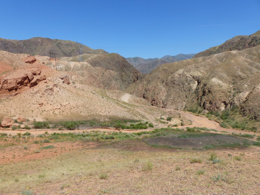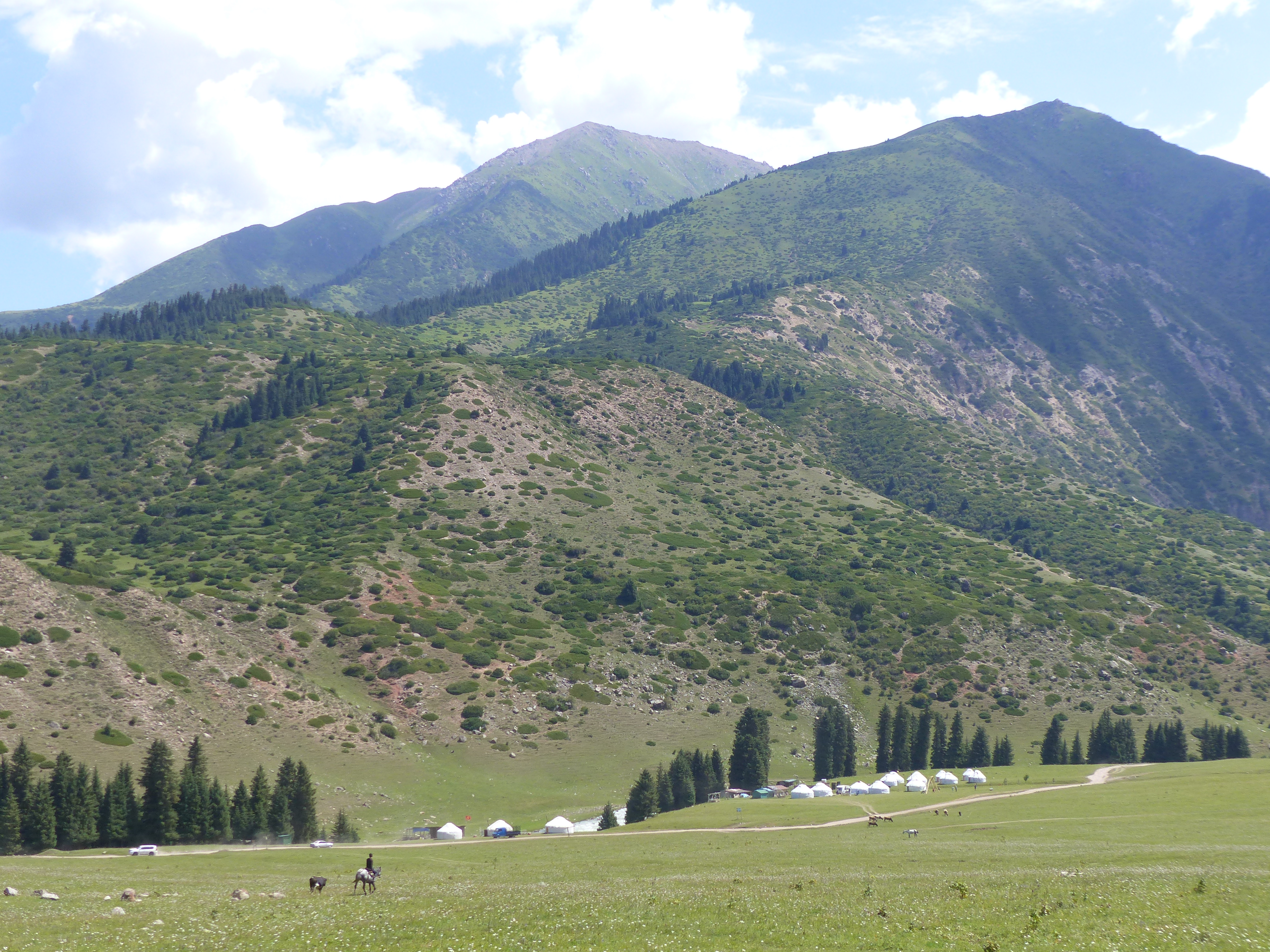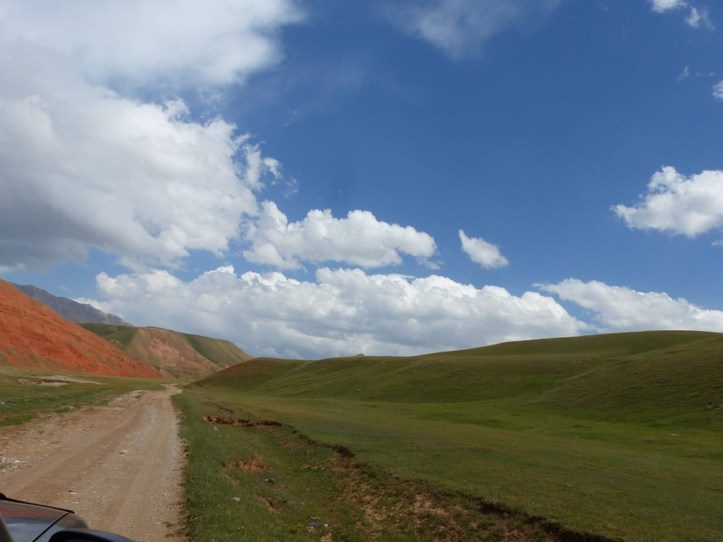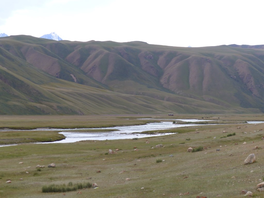 Aujourd’hui, après un petit déj de roi dans notre hôtel de luxe (on rencontre même 2 français en vacances dans le coin car ils ont « de la famille à Bichkek » … comment peut on avoir de la famille à Bichkek???), grande journée de route pour rejoindre par les pistes le lieu de notre campement… Et oui, on s’installe pour 2 nuits en camping sauvage dans une vallée d’altitude (au moins 3000 m).