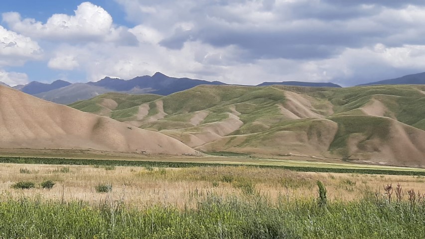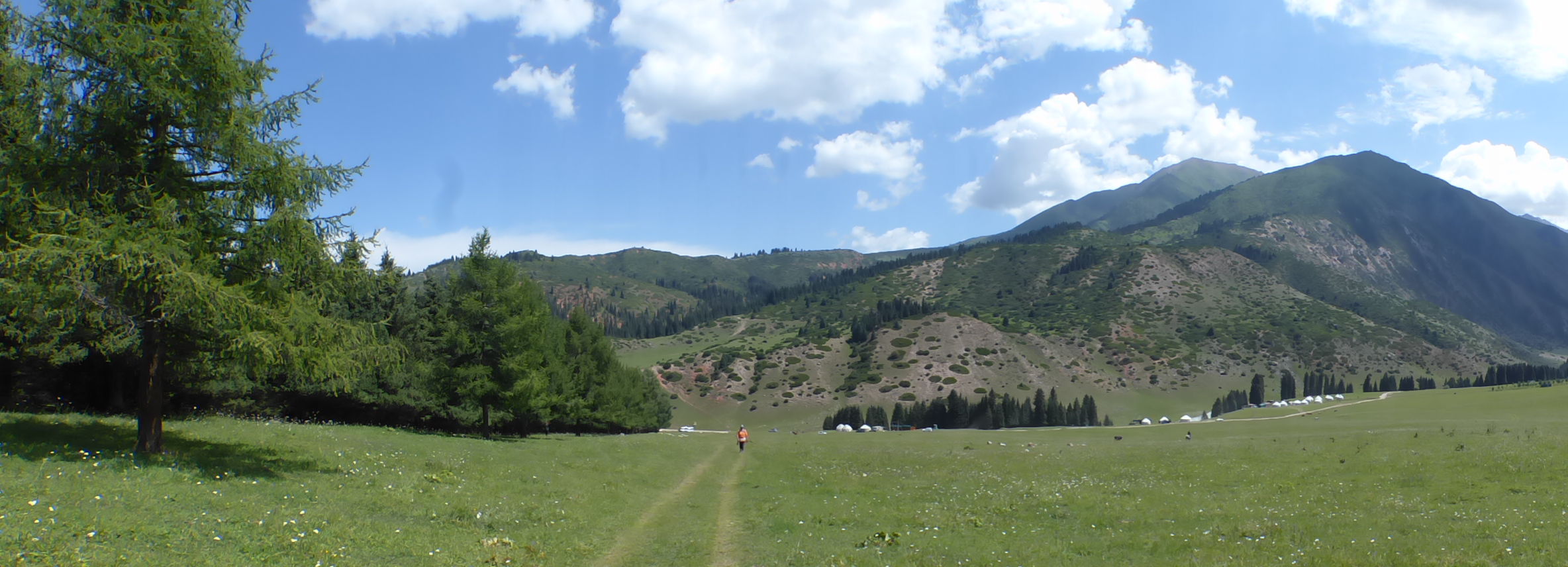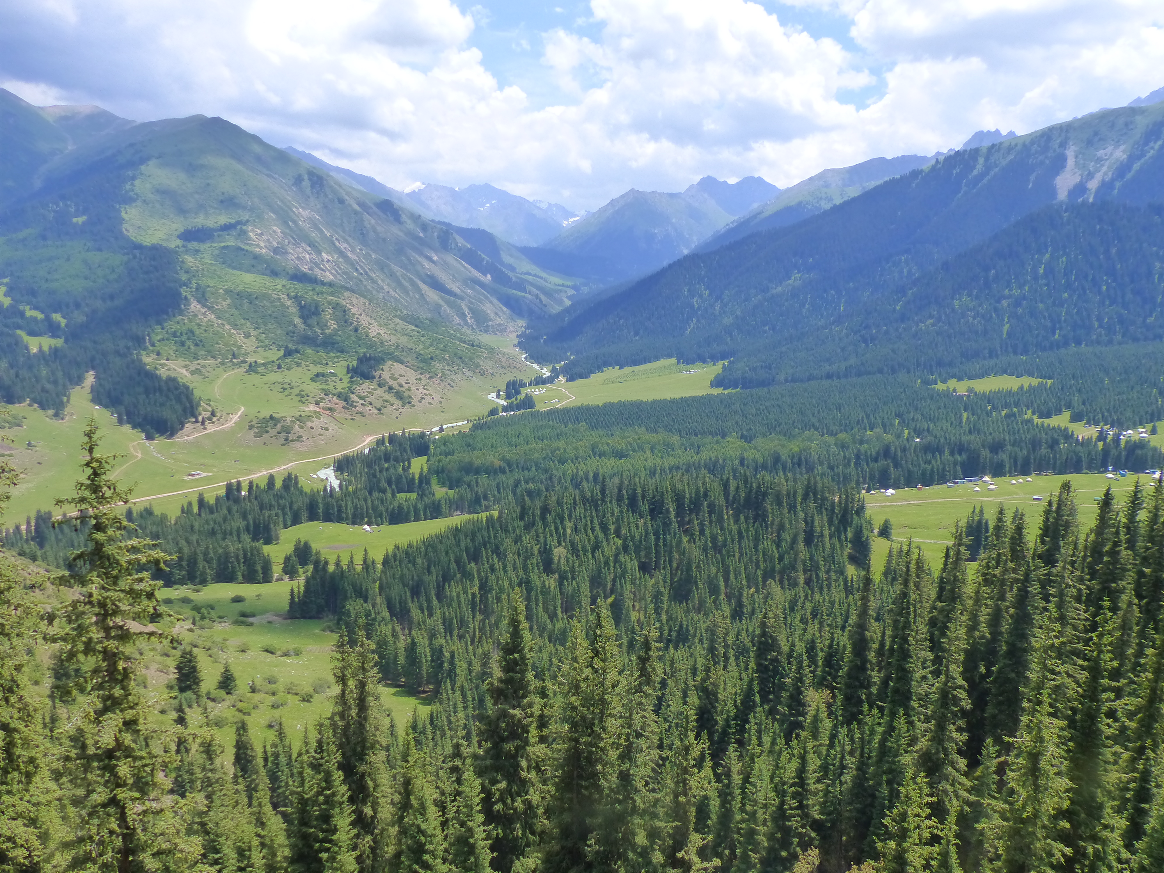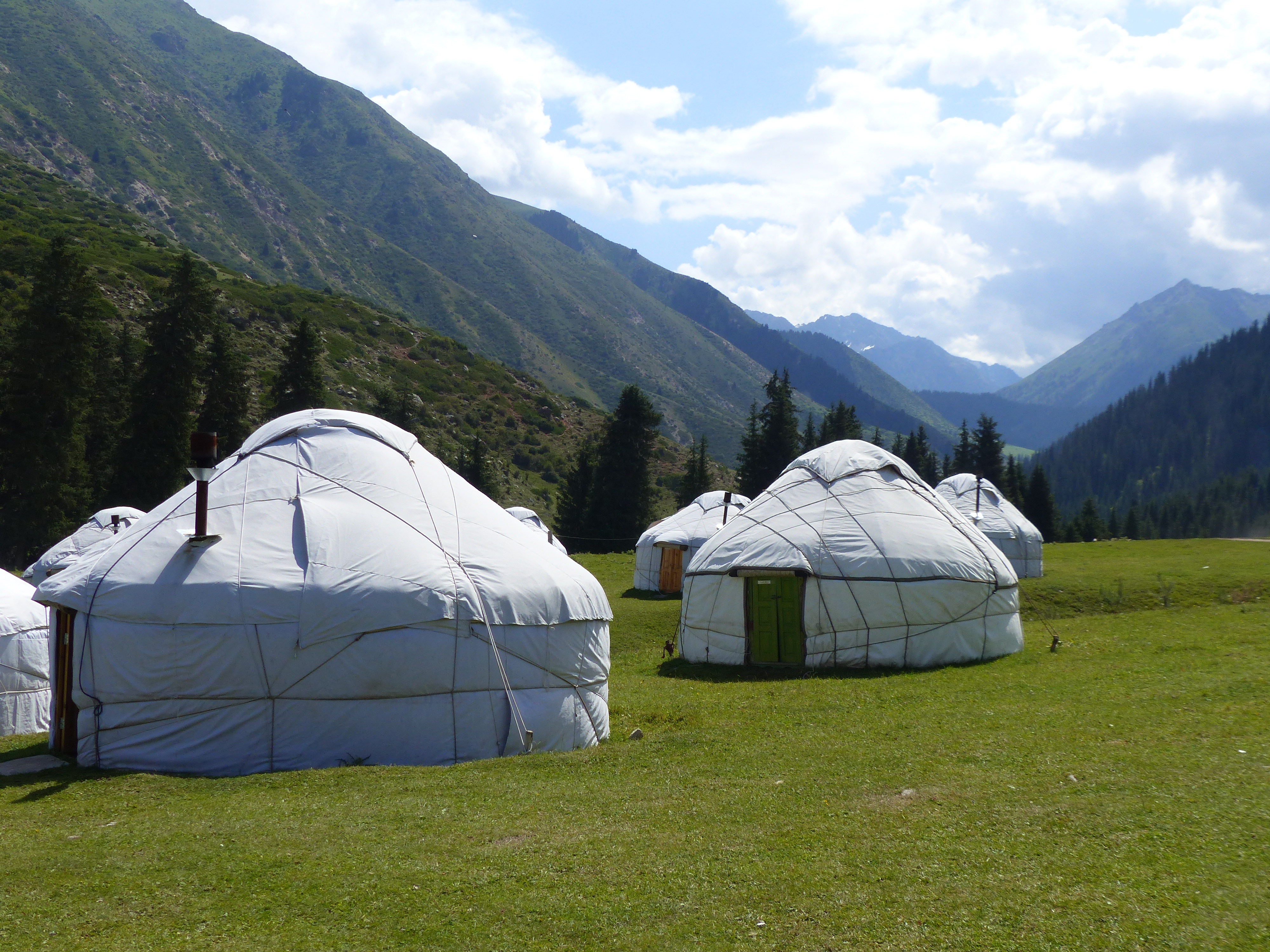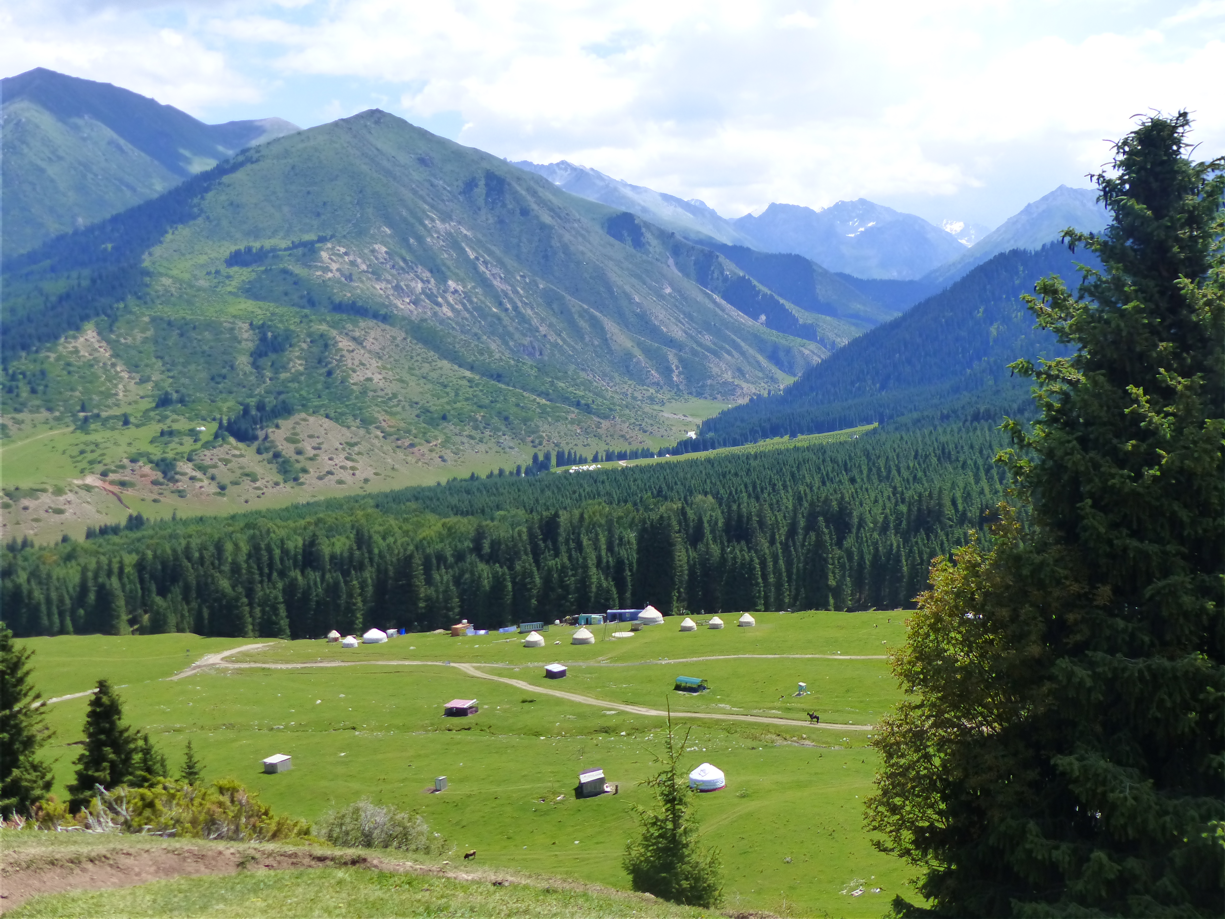 Aujourd’hui, après un petit déj de roi dans notre hôtel de luxe (on rencontre même 2 français en vacances dans le coin car ils ont « de la famille à Bichkek » … comment peut on avoir de la famille à Bichkek???), grande journée de route pour rejoindre par les pistes le lieu de notre campement… Et oui, on s’installe pour 2 nuits en camping sauvage dans une vallée d’altitude (au moins 3000 m).