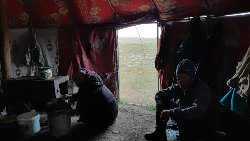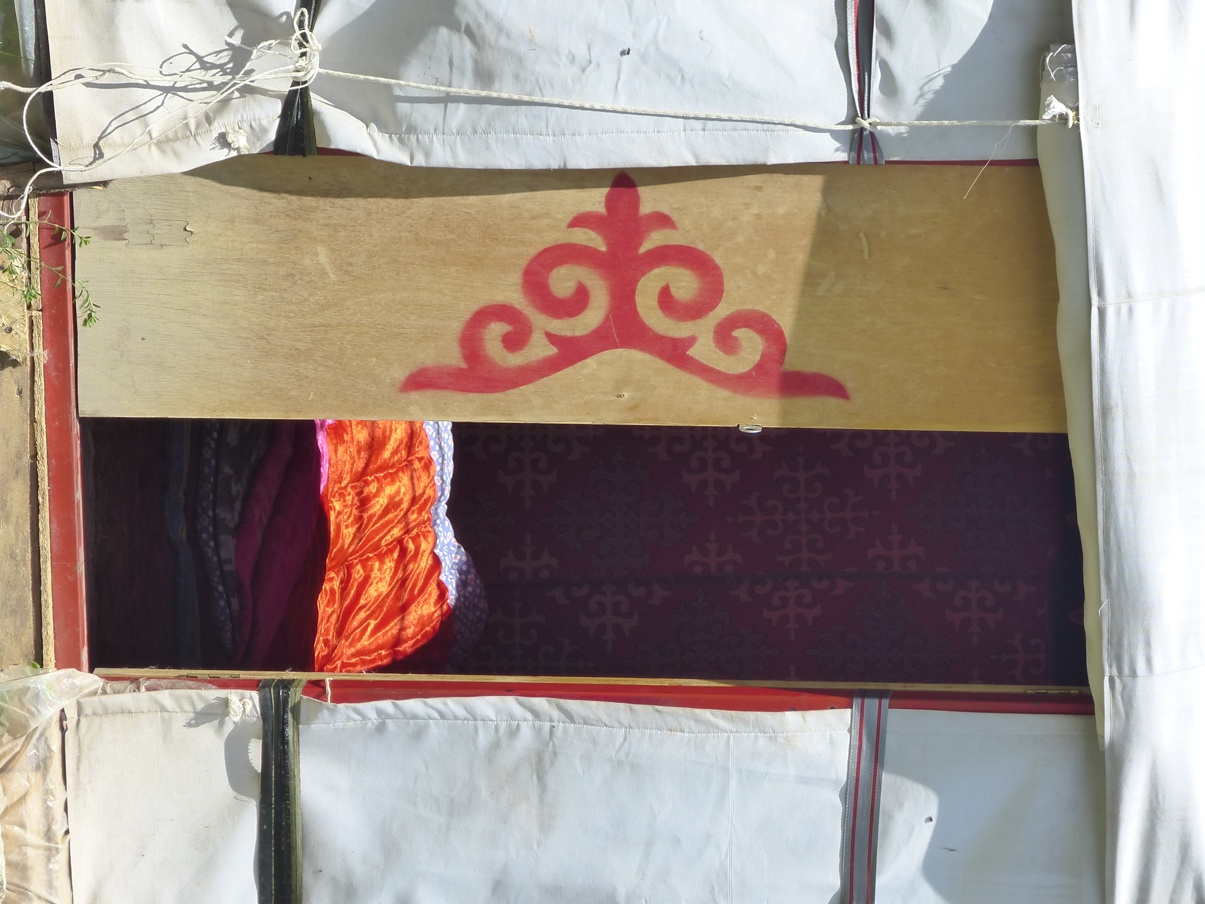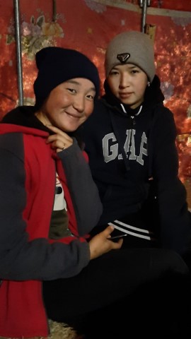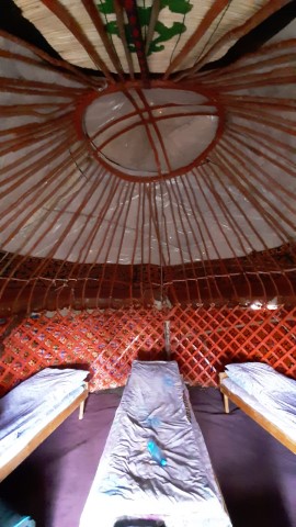 Une yourte nous est réservée. Elle est équipée d'un poele qui semble superflu à cet instant de la journée. En fait, il sera allumé au moment du repas, juste avant le coucher. Il est alimenté au charbon mais la famille qui nous accueille (tous sont sortis pour nous recevoir à notre arrivée) utilise de la bouse de vache séchée. Une grande flambée est donc faite avant le coucher et la yourte devient surchauffée. Il n'y a pas de deuxième tournée, la chaleur se dissipe petit à petit au fil du temps. De chaudes couvertures compensent la baisse de température. Nous dormirons dans des lits (simples), contrairement à Oulan et Altimbeck qui dorment sur les tapis à même le sol. Pas sur que le lit, si simple soit-il, soit un meuble habituel.