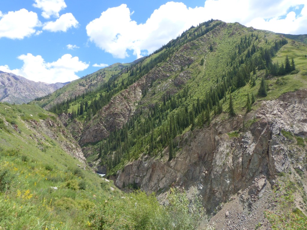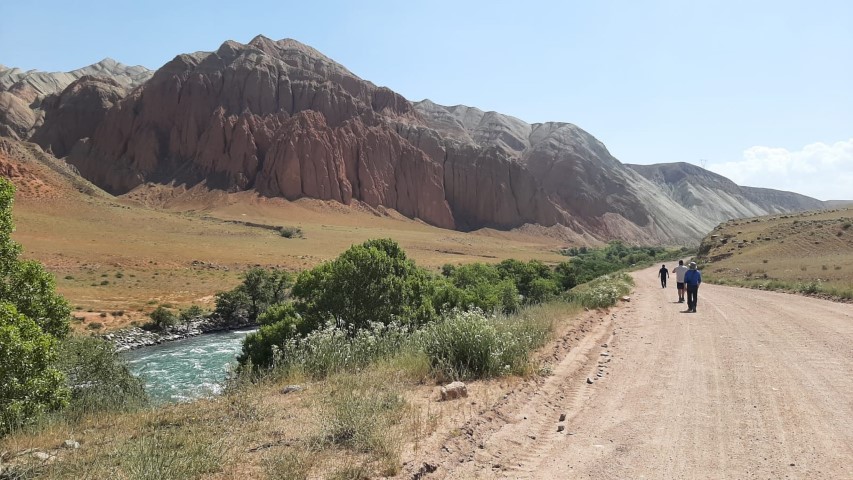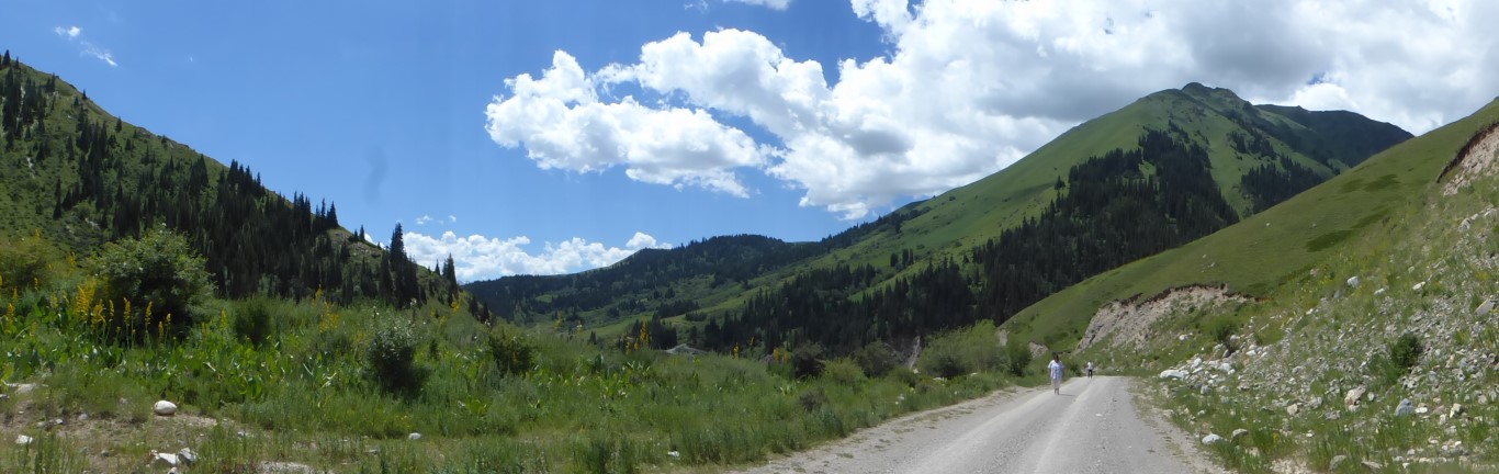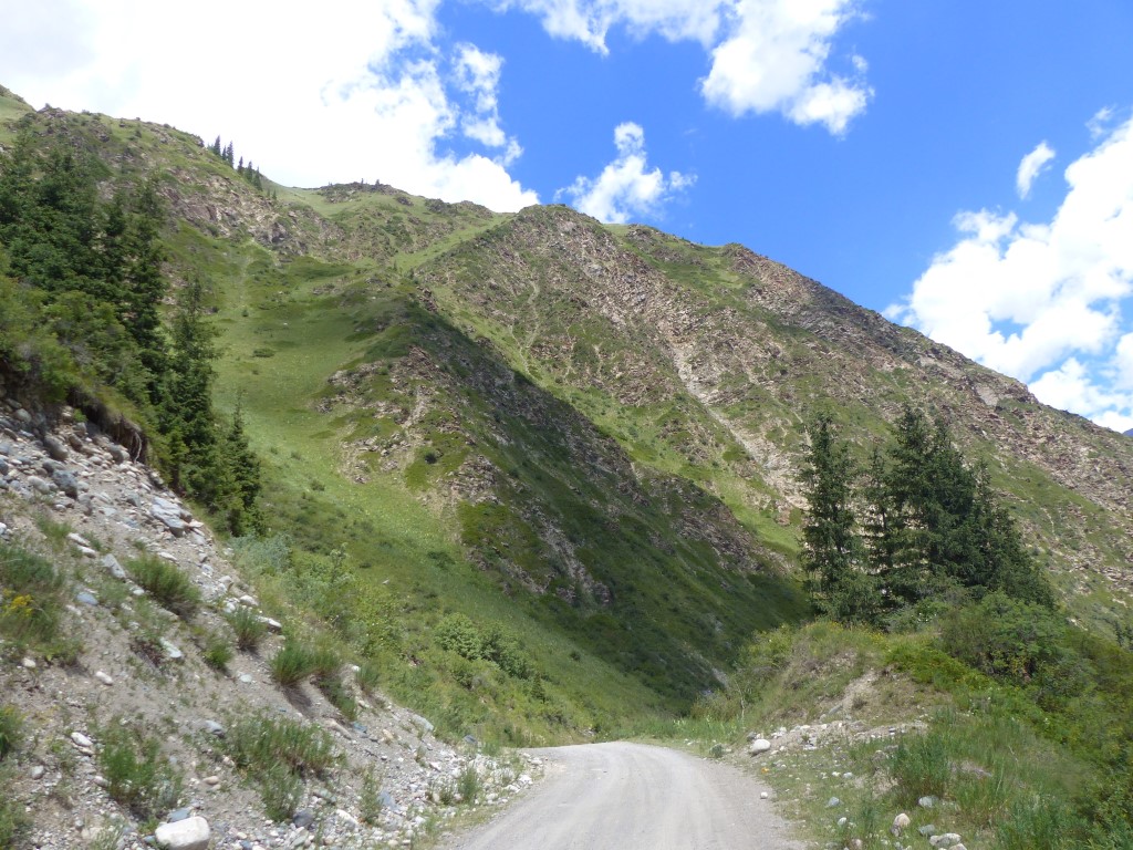 La vallée est très belle. Nous descendons de voiture pour marcher et en profiter d'avantage. Nous ne croisons que quelques voitures, toutes Kirghizes, aucun touriste dans ce coin.
