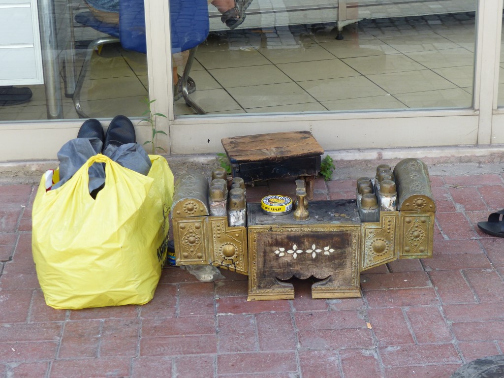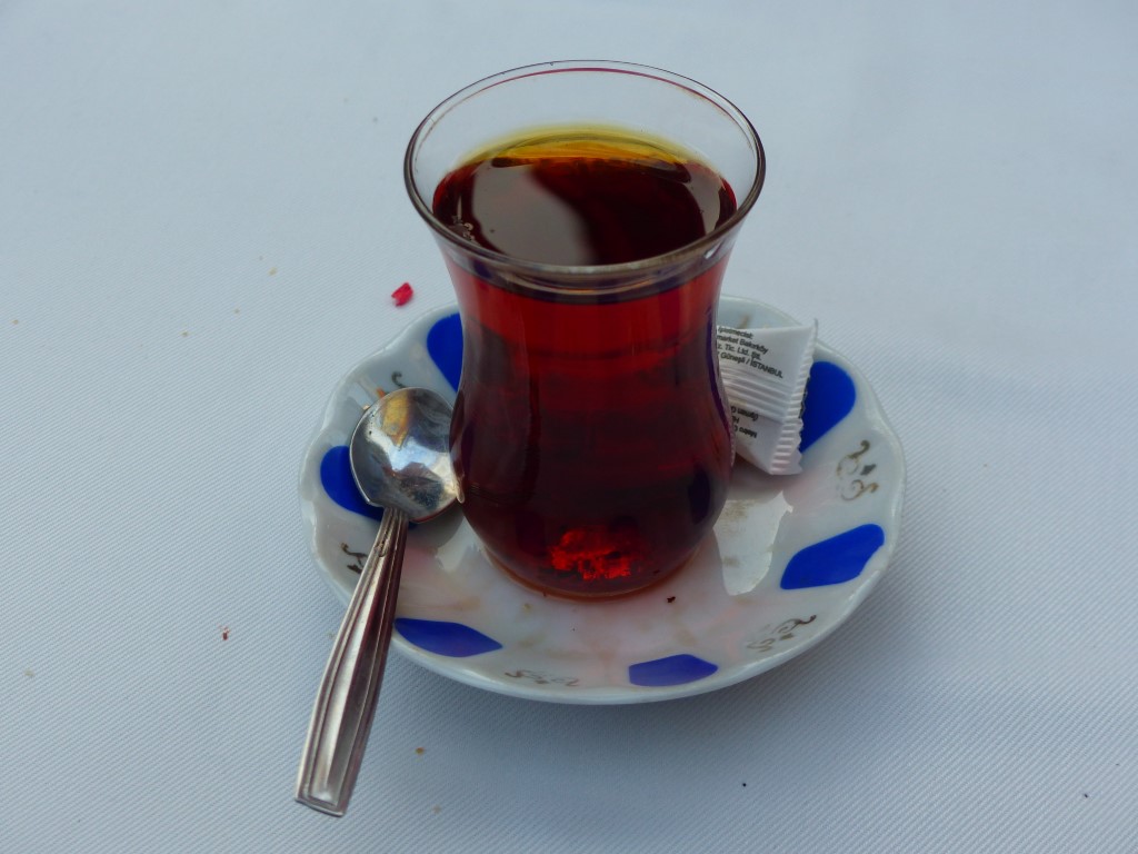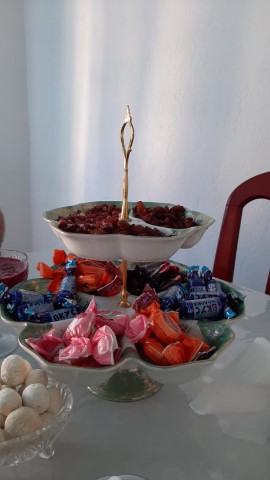 La guesthouse où nous avons passé la nuit comportait plusieurs chambres qui semblaient toutes occupées. Dans la soirée nous pouvions entendre le muesin appeler à la prière. L'appel n'était pas très fort, on pouvait ne pas l'entendre. La veille, à notre arrivée, une thé nous a été servi. Il était accompagné de confiture de framboise et de cerises au sirop. Il y avait des portions assez impressionnantes avec chaque tasse. Pour ne pas offenser, j'ai réussi à finir les cerises au sirop. Pas facile, c'était très sucré... J'apprendrai plus tard que ces éléments sont en fait utilisés pour sucrer le thé. Il n'a jamais été question de confiture ni de fruits au sirop. Oups!