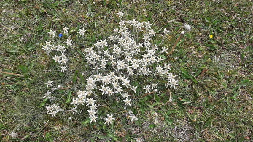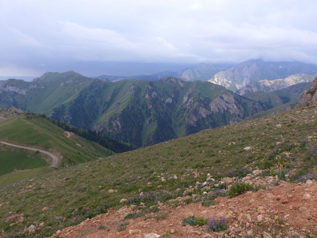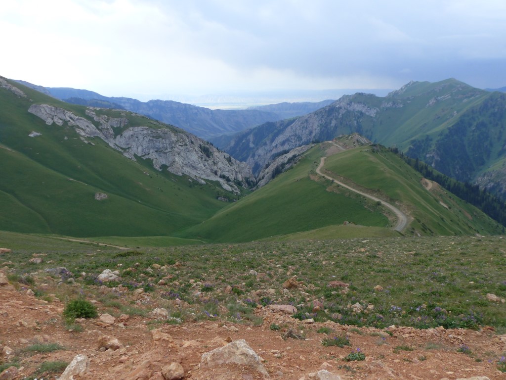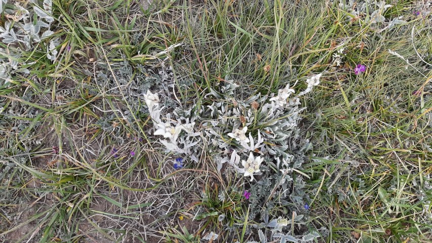 Beaucoup de route (piste) aujourd'hui pour rejoindre Tash-Rabat. Beaucoup d'ascension également. Nous empruntons la route des "33 perroquets" (route de montagne en serpentin). Nous passons à côté d'une petite mine de charbon à ciel ouvert. Les autres voitures croisées sur cette piste défoncée sont des audi des années 80. Aucun Français ne viendrait avec une telle voiture ici ! Nous faisons une halte au passage d'un col. Il y a là des eidelwess un peut partout. Ici, cette fleur n'est pas protégée.
