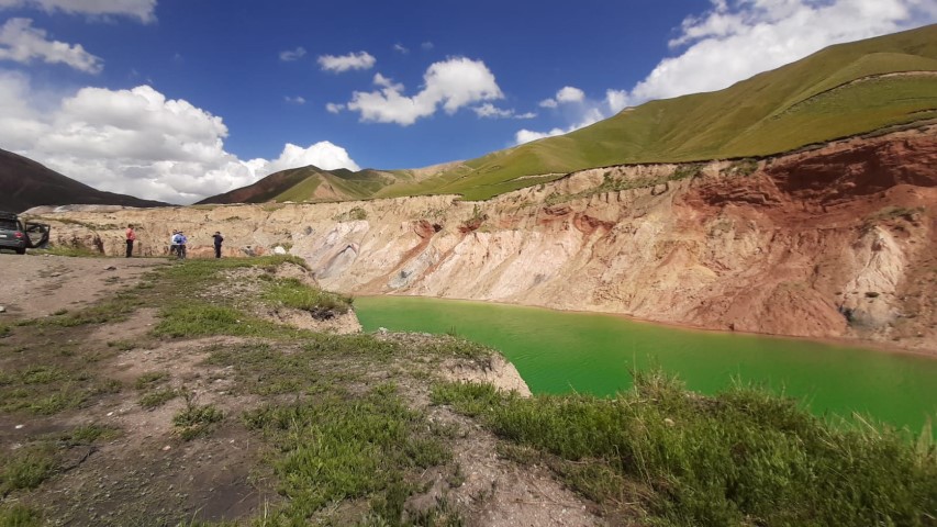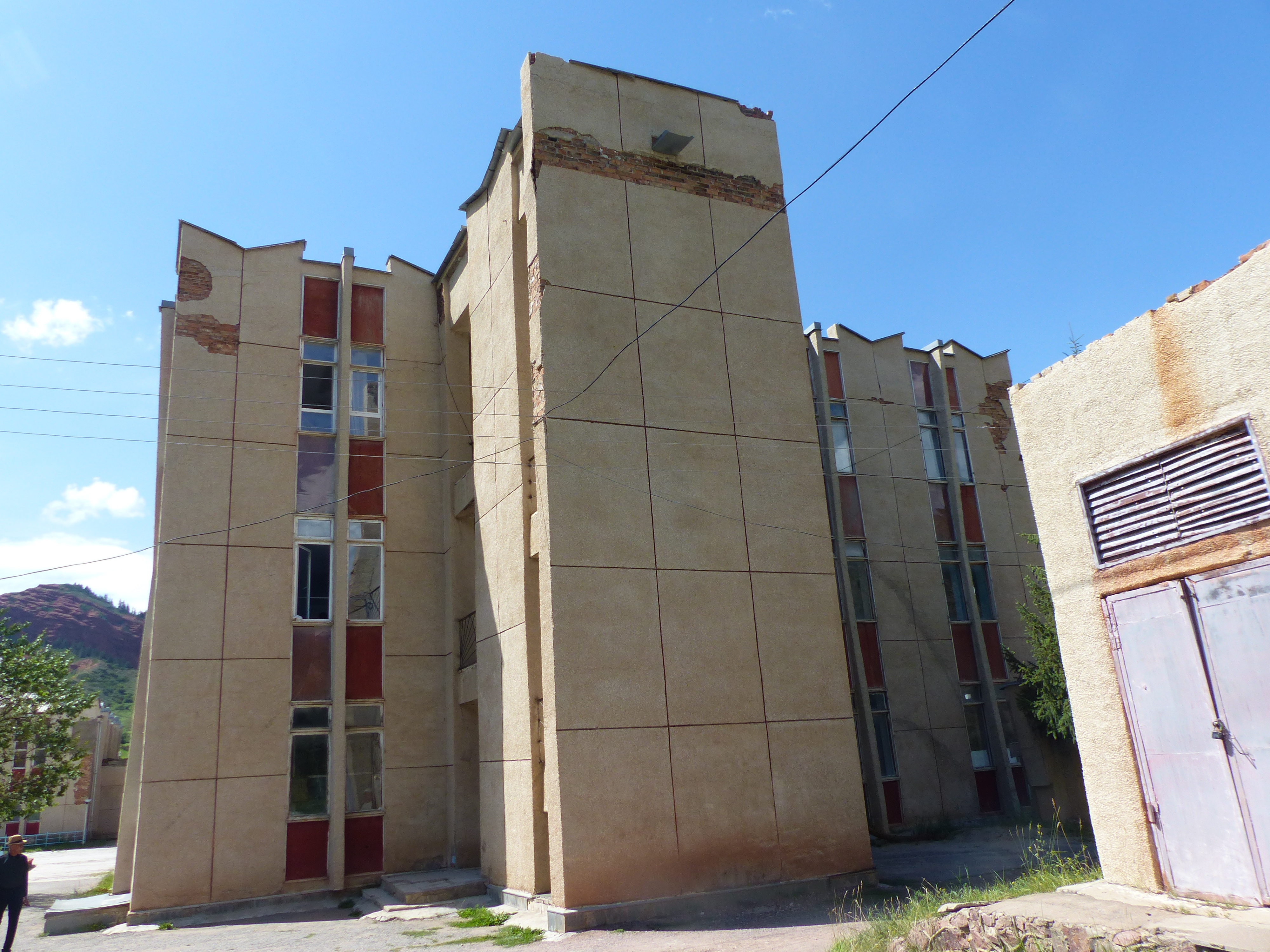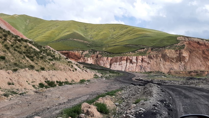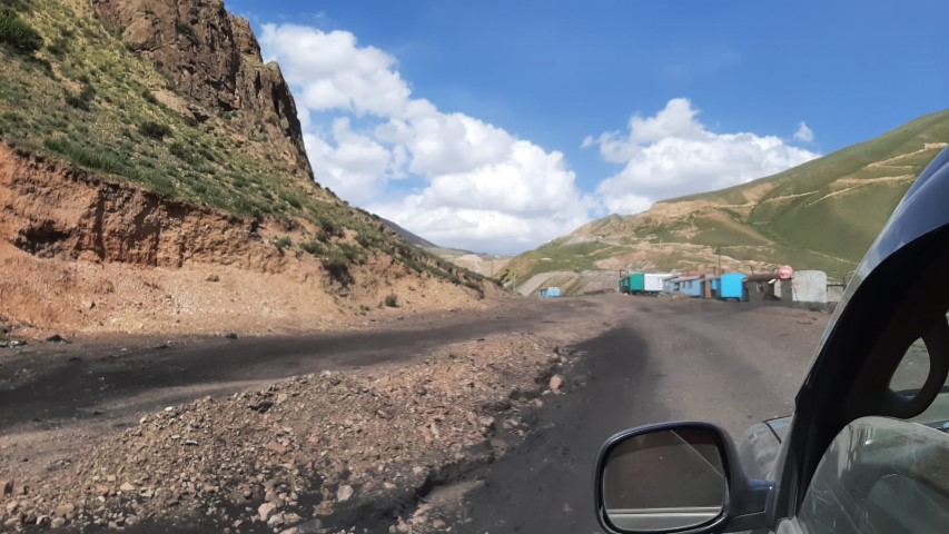 La mine, découverte et exploitée par un groupe canadien pendant 10 ans, a depuis été rétrocédée aux Kirghizes avec un passage de connaissances et tout le matériel qui avait été utilisé alors. Il semble qu'elle soit la 10ème plus grosse exploitation d'or au monde. Située à 3500m, une très bonne piste, constamment entretenue avec force matériel de voirie, permet de l'atteindre depuis Barksoon. Nous n'avons donc aucun mal à enchaîner la descente en 30 virages de montagne jusqu'à la ville située elle à 1700m.