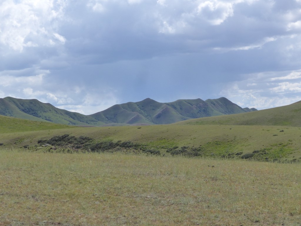 Oulan nous propose d'aller nous balader vers des rochers où l'on peut voir des pétroglyphes. DVGO et moi même prenons l'option "cheval". Chris et Oulan nous accompagnerons à pied. Aucun de nous n'étant cavalier, nous avons commandé des chevaux calmes. D'abord, il faut monter dessus. Bouh, c'est haut ces étriers! Une fois dessus, il faut dire "tchou tchouk" pour avancer et "Drill" pour arrêter. Celui de DVGO semble avancer droit, le mien ziggzag ! Notre balade durera 4 heures sachant qu'au bout d'une heure, alors qu'il faisait beau, un orage s'est déclaré. Oulan connaît les propriétaires d'un ensemble de 3 ou 4 yourtes où nous nous abritons avant que la saucée ne soit sur nous. Nous patientons environ une heure avec cette famille composée d'un couple et de leurs deux filles de 16 et 15 ans. Le thé nous est offert ainsi que des beignets et du beurre "noisette". Oulan fait la conversation. Nous essayons d'entrer en contact avec les deux ados qui parlent anglais, moins bien que nous (c'est dire !) et qui sont surtout très timides. Peu d'échange donc.