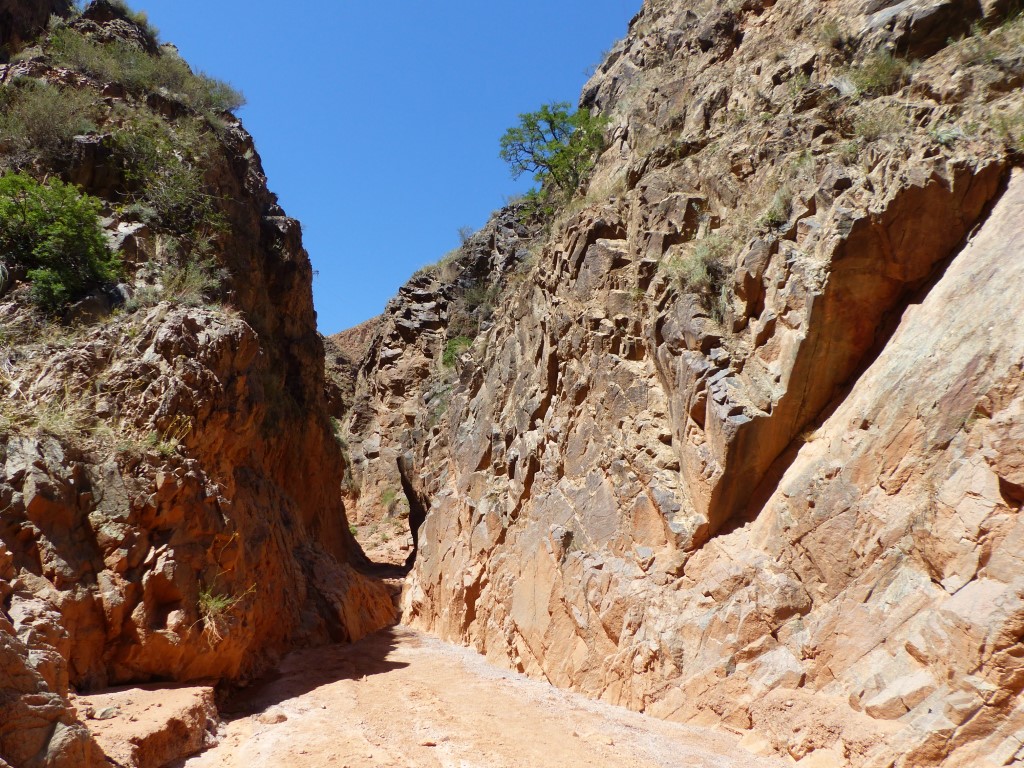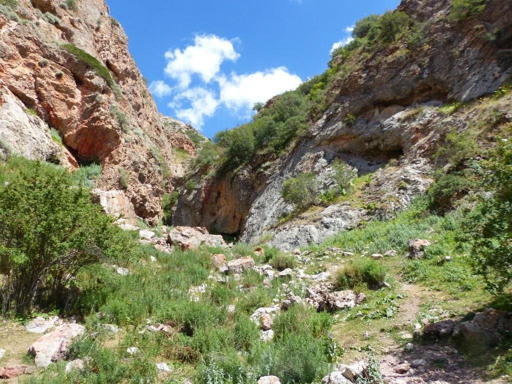 Notre destination de ce matin : un canyon très très étroit (quelques mètres tout au plus) tout au fond d’une vallée que nous remontons sur environ 1 km à pied. C’est assez ludique et sportif, il y a pas mal de rochers à escalader, et plein de découvertes botaniques à faire (cassis sauvage, fleurs dont j’ai oublié le nom mais que j’ai dans le jardin, et enfin cannabis – une sorte un peu bizarre, très crénelée). On ne doit quand même pas être très doués côté escalade car Oulan donne assez vite le signal du demi tour, et nous retrouvons notre vallée enchantée (avec yourte, troupeau de vaches et de chevaux, comme toute vallée qui se respecte), pour le pique nique quotidien. Altimbeck a mis la musique à fond, je ne sais pas ce qu’en pensent les canassons qui broutent de ci de là.