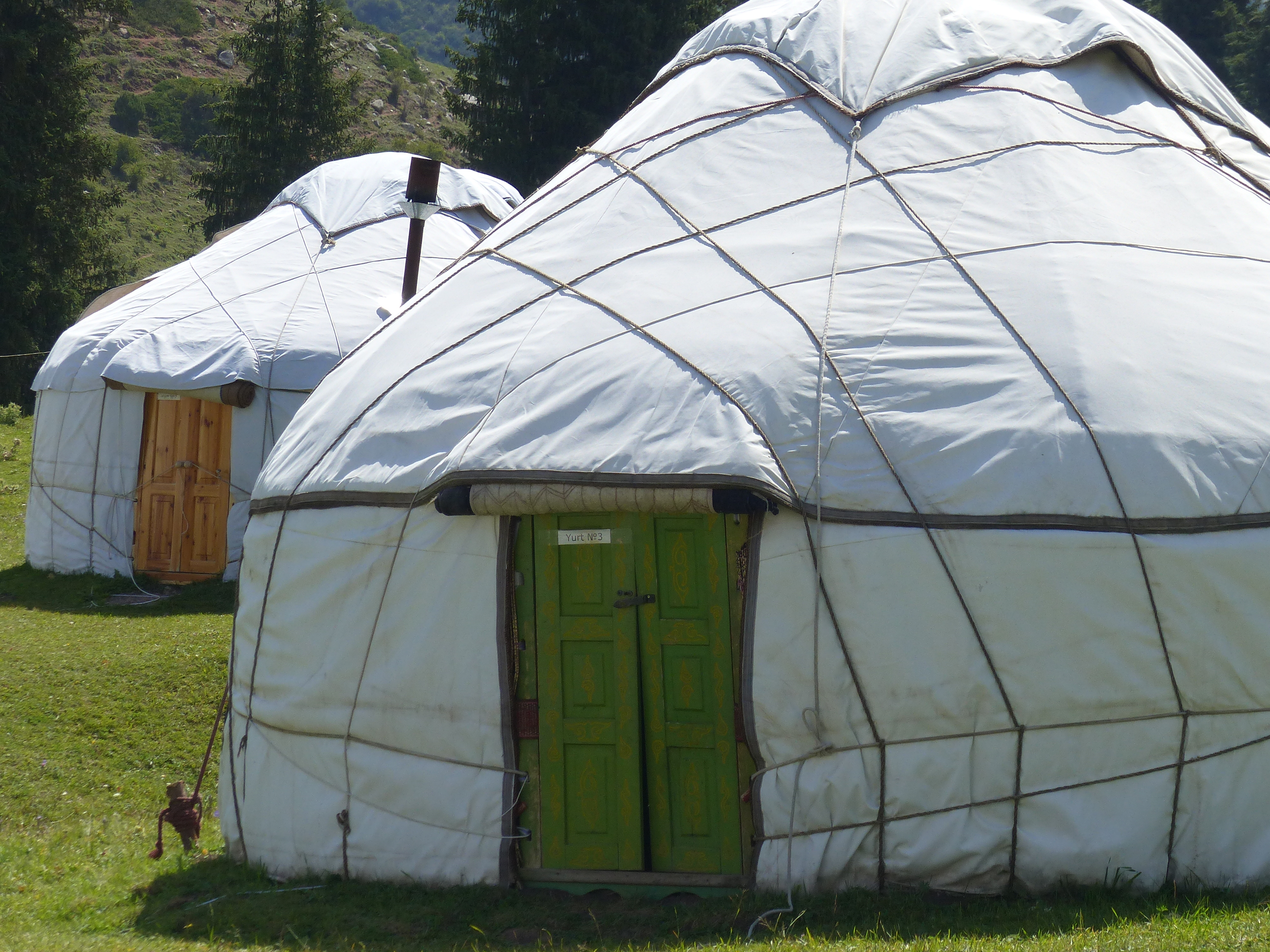 Ce soir le repas se passe dans un espèce de complexe restau karaoké boite de nuit, composé de plusieurs yourtes dont 1 immense pour le restau. Nourriture kirgize, comme il se doit. Nous sommes épatés par une immense limousine 4X4 garée devant le restau (apparemment elle est à louer – très cher – pour des excursions dans les montagnes….). Après cette dernière bizarrerie du jour, bonne nuit !