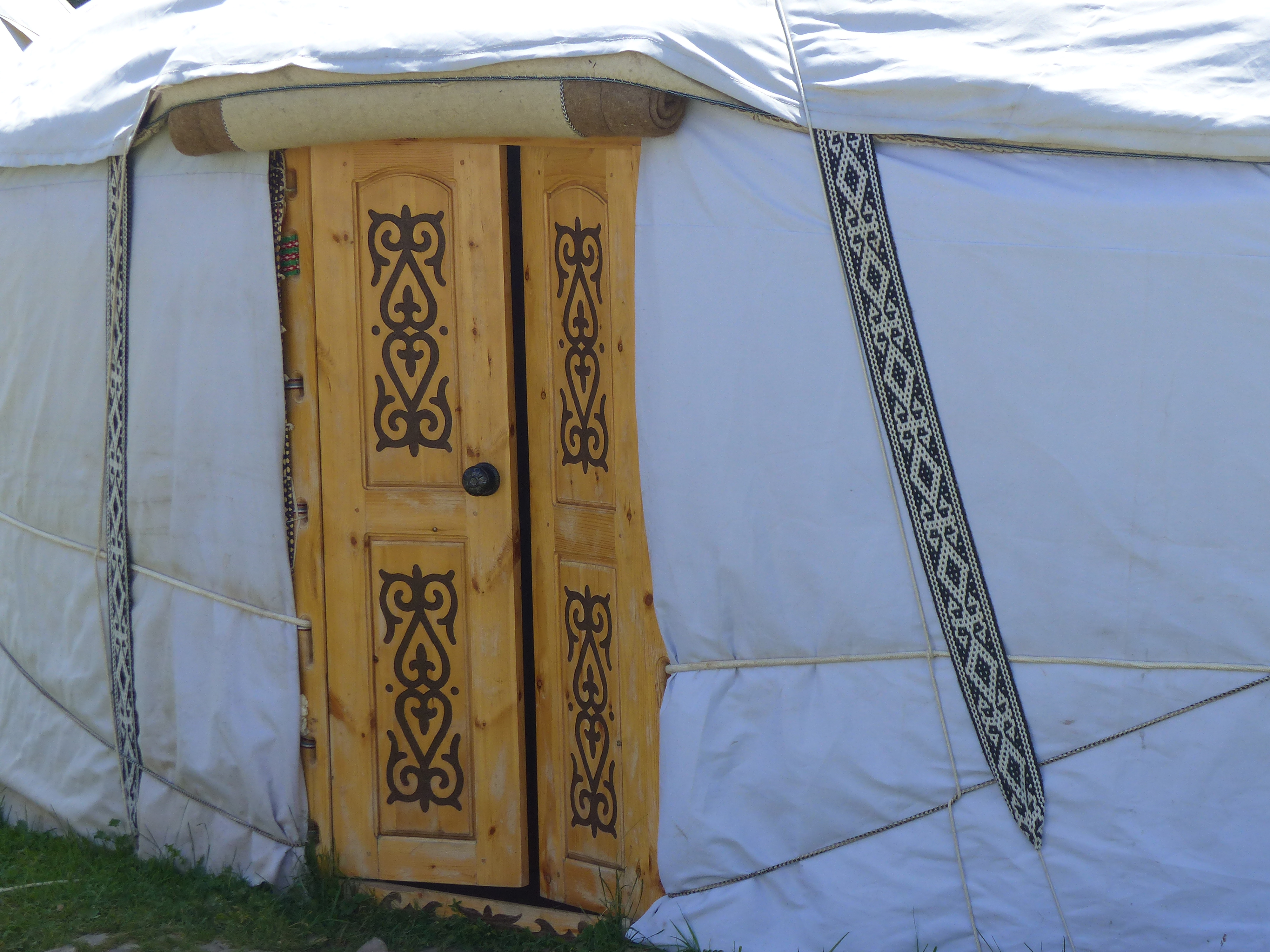 Comme hier, on est assis par terre pour tester notre souplesse (sauf Didier GO à qui on ne la fait plus …) alors que nos 2 hôtes se sont pris 2 petits sièges bas … Il n’y aurait pas comme une arnaque ? Bref, nous discutons agréablement (enfin surtout Didier) en anglais avec le patron et la patronne. Celle si nous apprend avoir passé 2 séjours près d’Orange il y a quelques années pour des raisons professionnelles. Le patron s’émeut de l’augmentation honteuse des tarifs des billets d’avion pour l’Europe … Depuis la guerre en Ukraine, la seule compagnie à assurer cette liaison est la Turkish Airlines et celle-ci y va à fond dans le jeu de l’offre et de la demande. Bref, il voulait participer à un salon de voyageurs à Genève en décembre, il avait mobilisé plein de monde pour ce salon (artiste peintre, photographe, …) et il pense que la participation de cette délégation kirghize est fortement compromise avec cette nouvelle donne… La patronne, elle, parle de ses petites filles (3 et 5 ans) qui sont arrivées hier de Bichkek pour les vacances et qui sont bien contentes de trouver de la fraîcheur – il fait 40 ° à la capitale – et le lac !