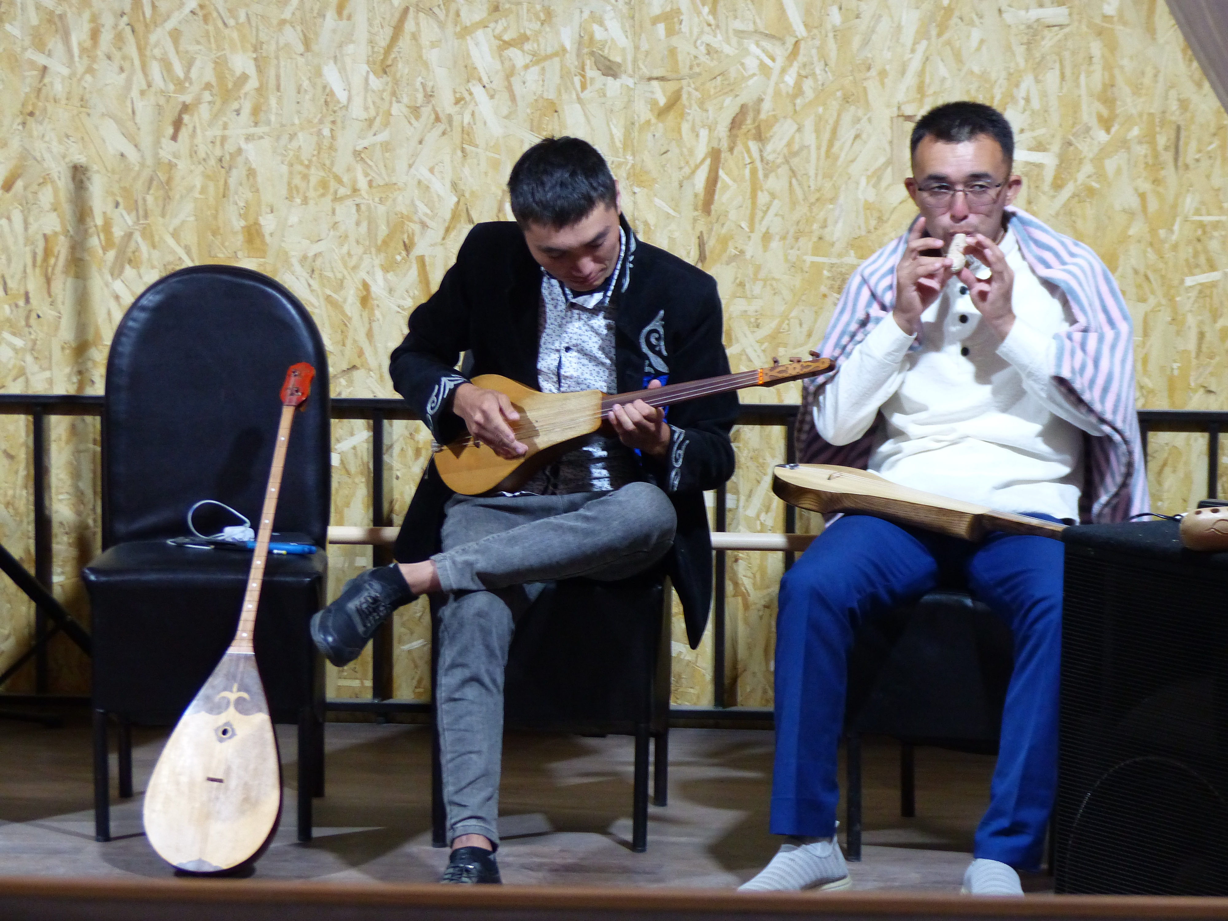 Le repas se passera dans le quartier nocturne de Karakol, dans un restaurant à la nourriture plutôt internationale (mais aussi kirghize). Le moment est agréable et se termine par l’audition d’un duo sympathique dans la cour du restau (sorte de guitare et flûtiau, airs traditionnels kirghizes … ils passent plus de temps à s’accorder qu’à jouer). On est les seuls spectateurs donc on se force à écouter 3 airs, puis on regagne nos pénates pour la nuit.