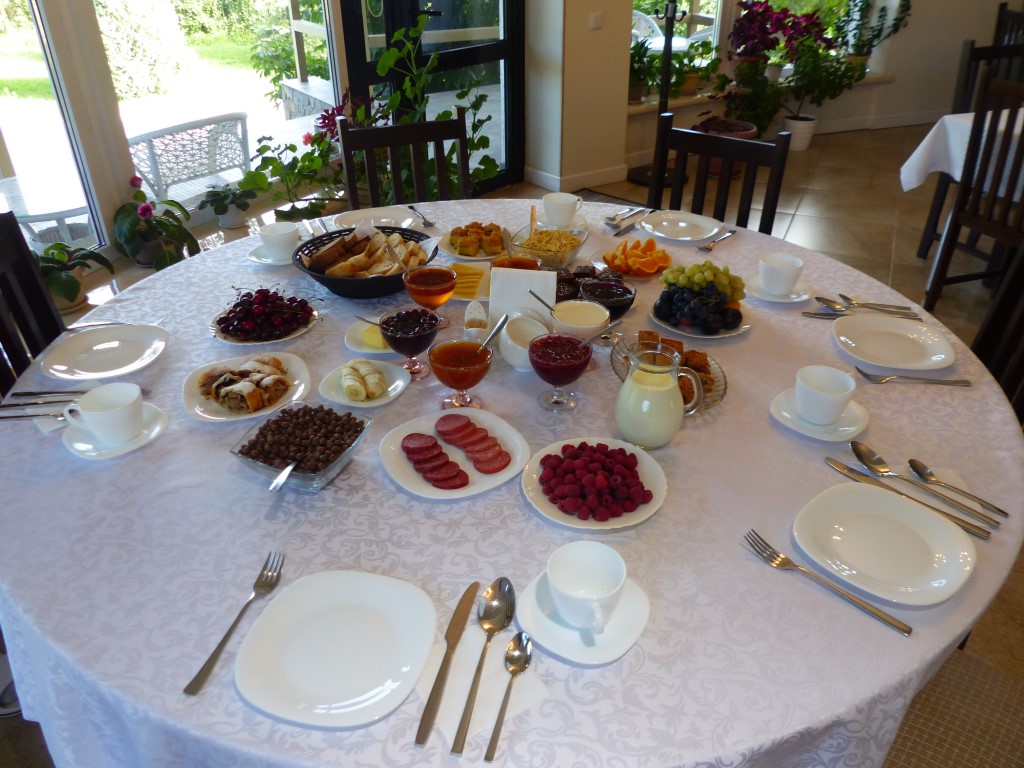 Lever comme d’hab pour être à 8H au petit déjeuner. La table est somptueuse (œufs, pancakes, porridges, 4 sortes de gâteaux, framboise, cerise, banane, abricot, fromage et même … pour faire plaisir à Altimbeck, saucisson).